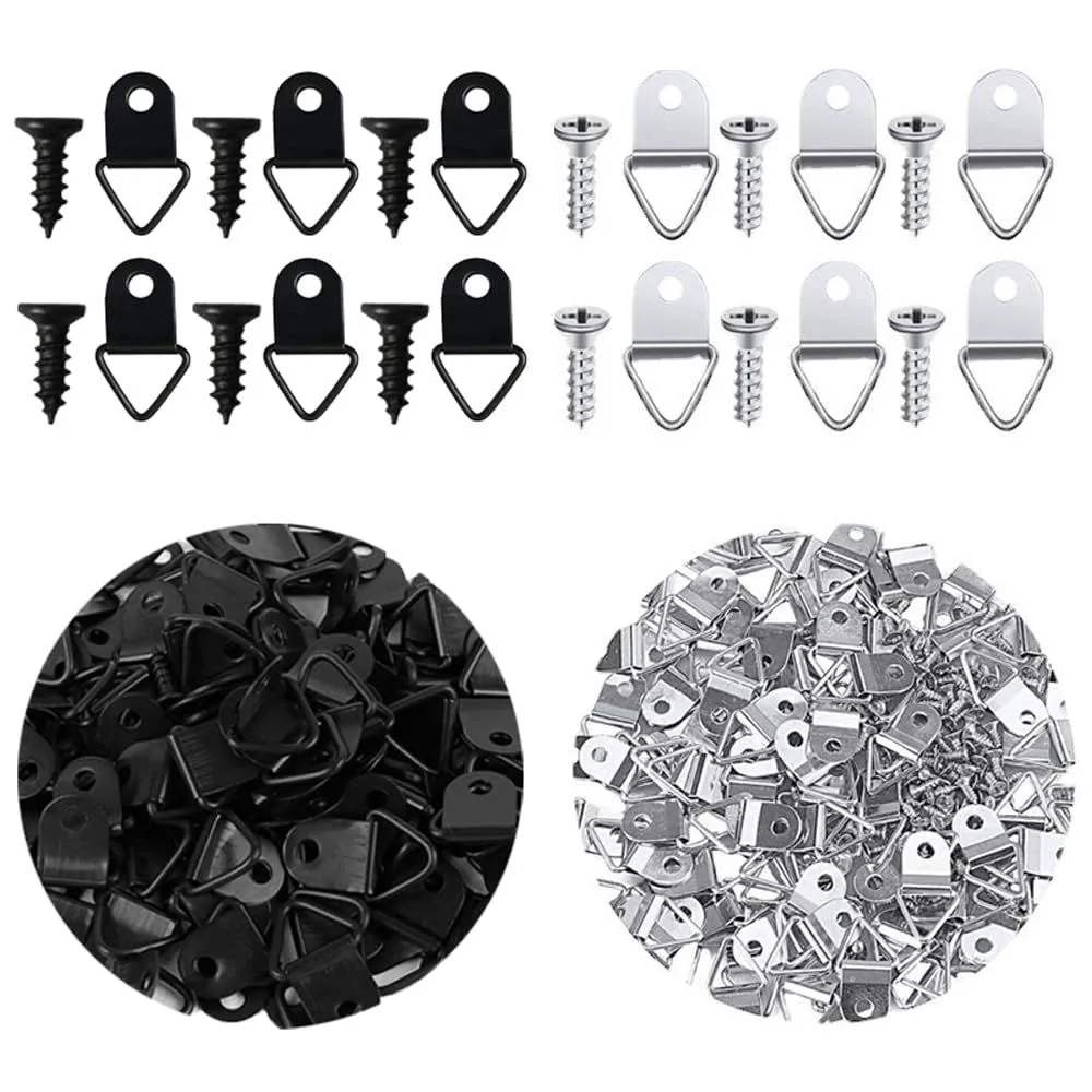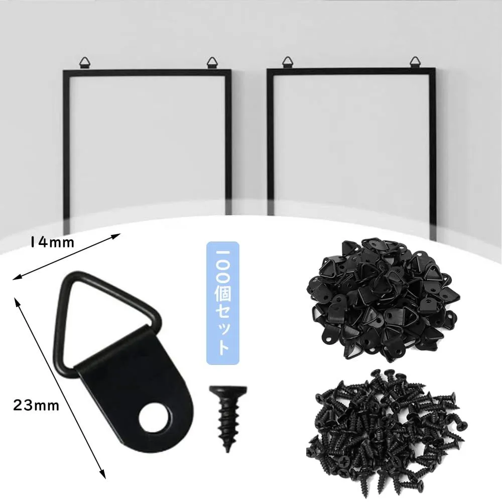 額吊り金具 フック 工芸品/写真フレーム固定適用 額掛け金具 壁掛けフック 木ネジ付き 額縁工作用金具 三角吊りカン 三角吊りカン (ブラック) 100個セット サムコス