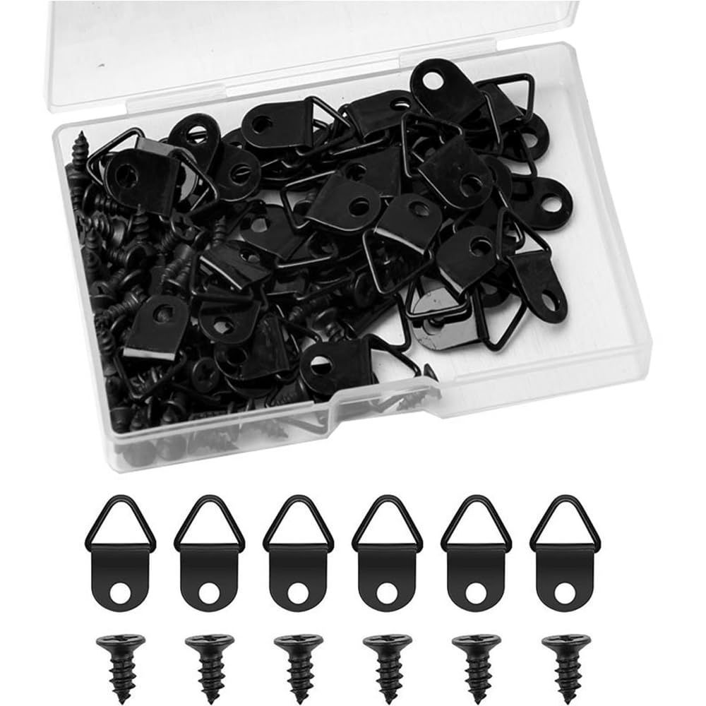 サムコス 三角吊りカン 100個セット 三角吊りカン 木ネジ付き 壁掛けフック 額掛け金具 フック 額吊り金具 工芸品/写真フレーム固定適用 額縁工作用金具 (ブラック)