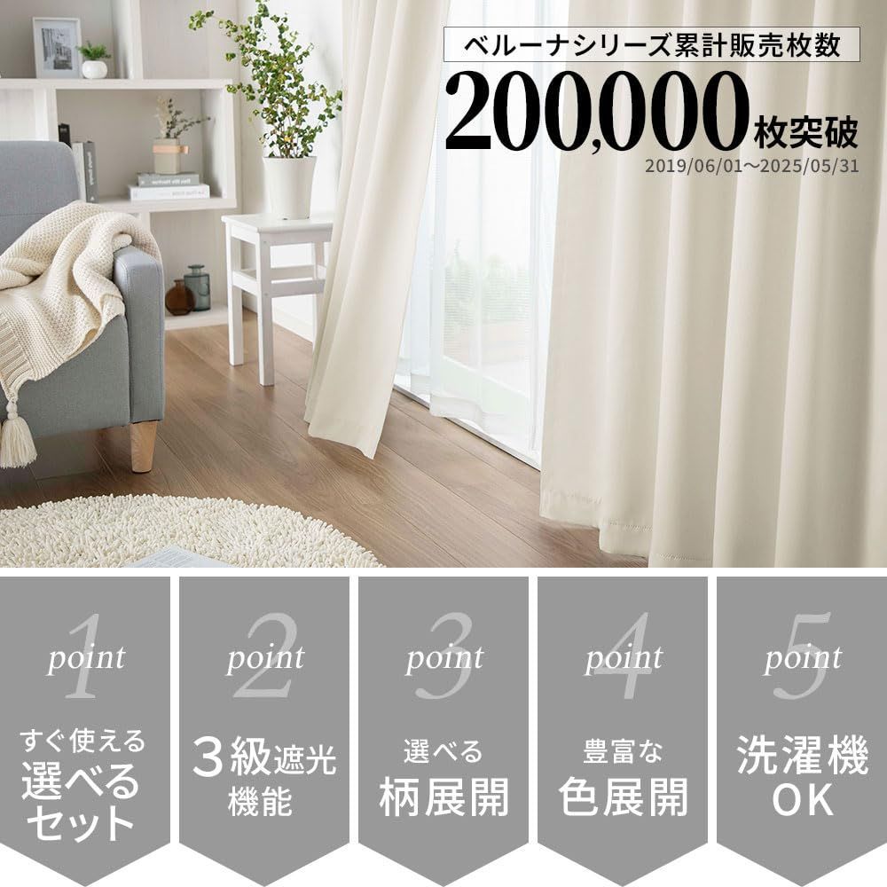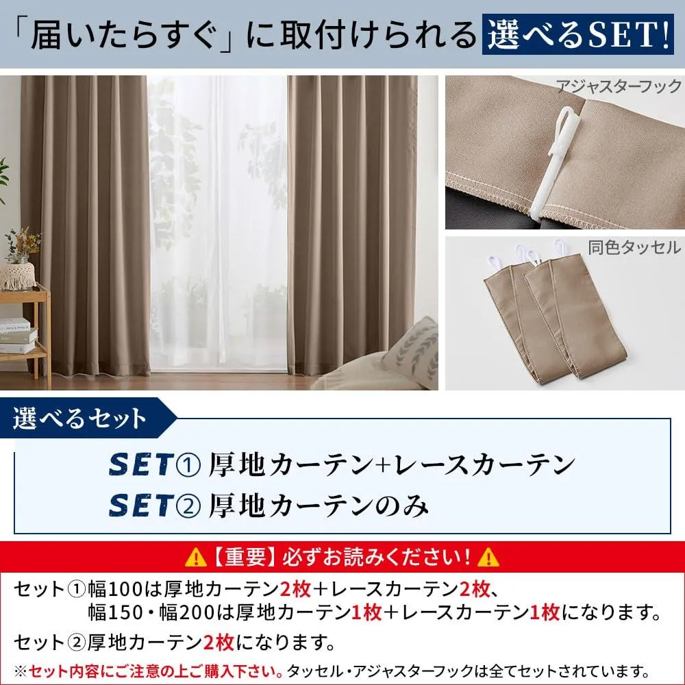 【おすすめポイント】厚地カーテン2枚とレースカーテン2枚の4枚セットなので、届いてすぐ使えます!