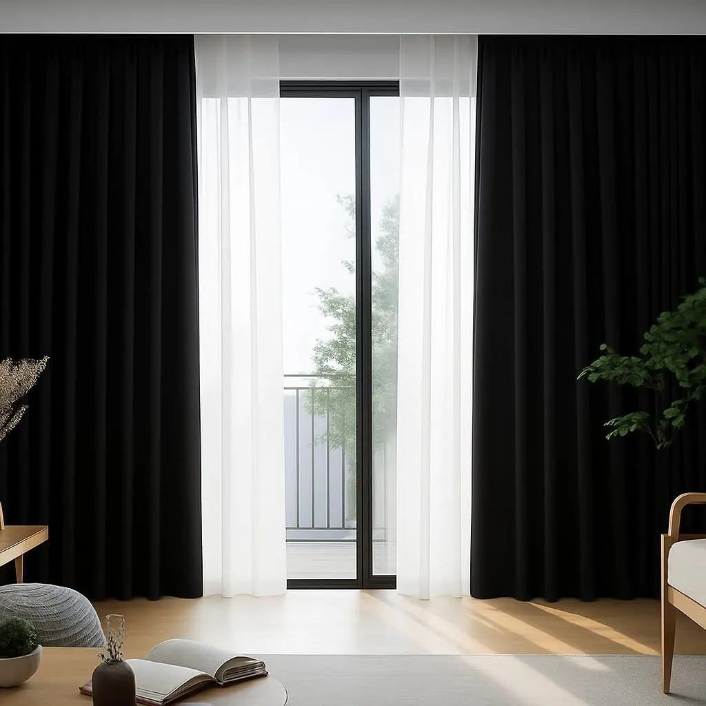 こちらのカーテンは、優れた遮光効果を提供します。朝や曇りの日などの弱光環境では、三層の遮光生地がほぼ完全に光を遮断し、静かで暗い雰囲気を作り出します。一方、正午や強い日差しの下でも、99%の遮光率を持つ核心のブラックシルク層によって、カーテンは大部分の光を効果的に遮断し、部屋のプライバシーと快適さを保ちます。遮光効果は光の強さによってわずかに変化することがありますが、常に理想的な光のコントロールとプライベート空間を確保します