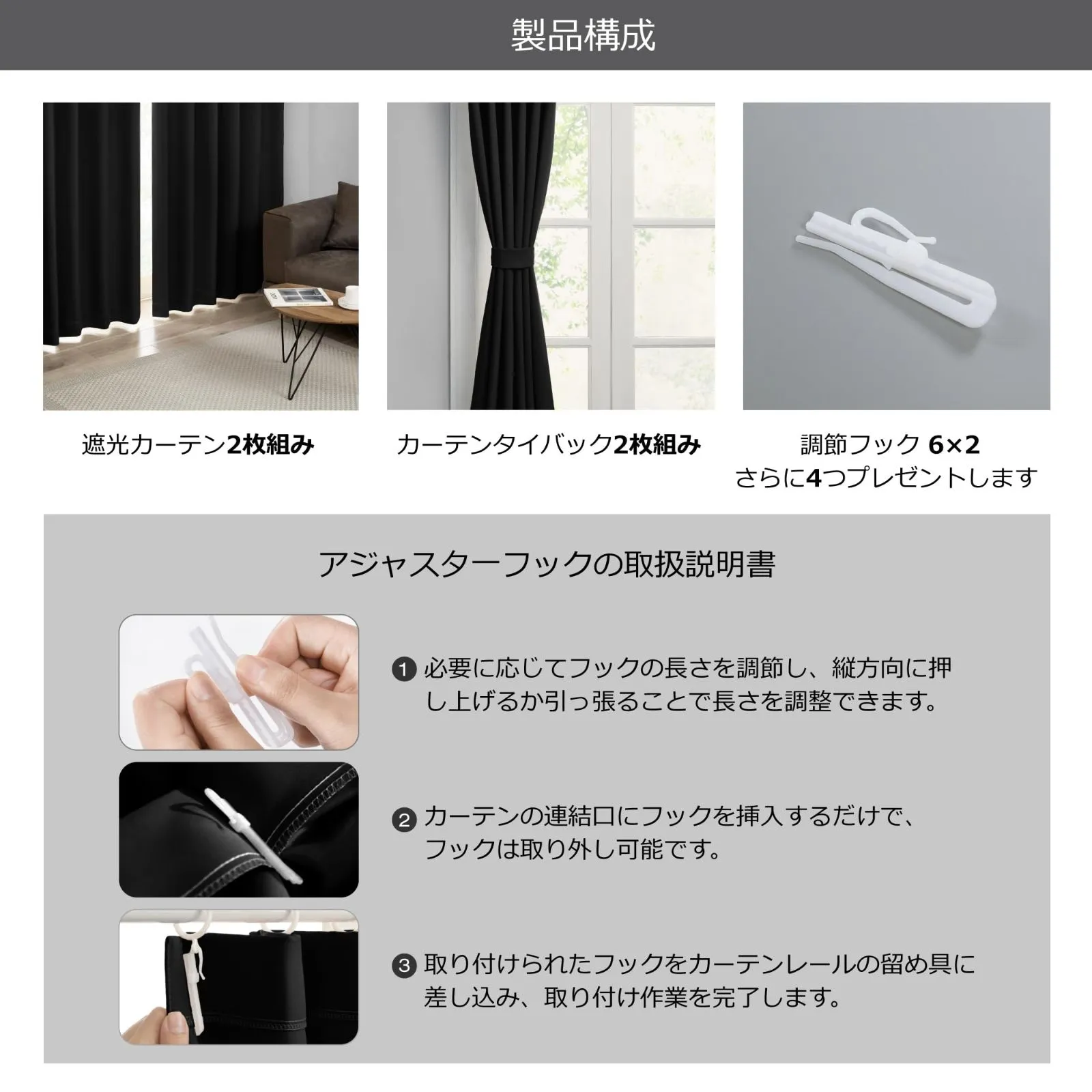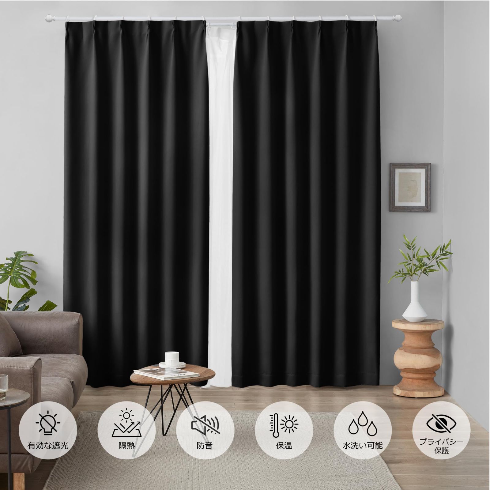 カーテン 幅100cm×丈135cm 2枚組 - 遮光1級 99%以上遮光 防音 遮音 断熱 防寒 ドレープカーテン 小窓用 UVカット 昼夜目隠し 子供部屋 寝室 リビング用,ブラック
