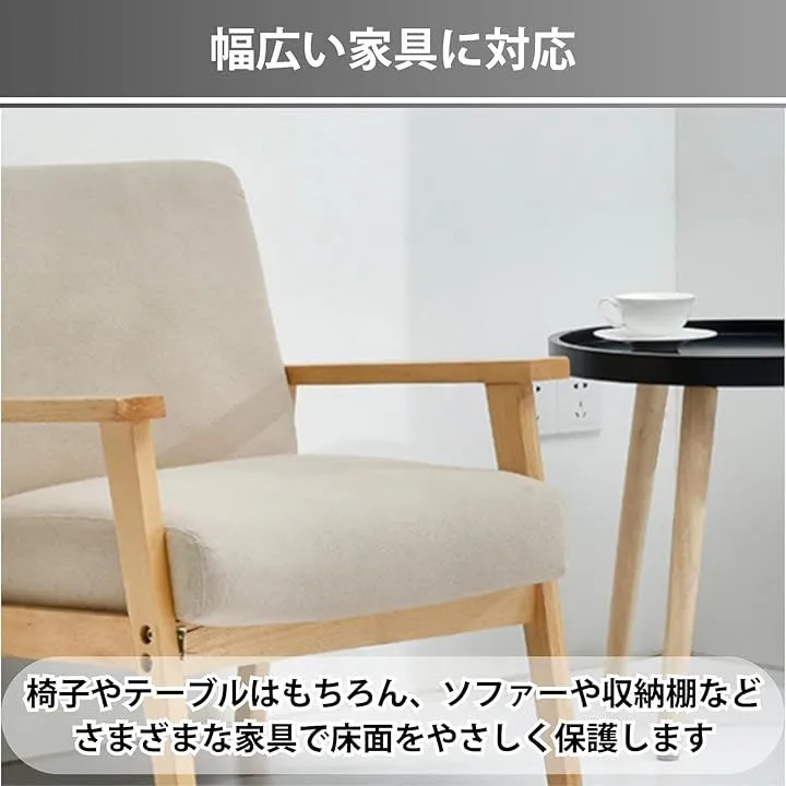 椅子やテーブルはもちろん、ソファーや収納棚などさまざまな家具で床面をやさしく保護します。