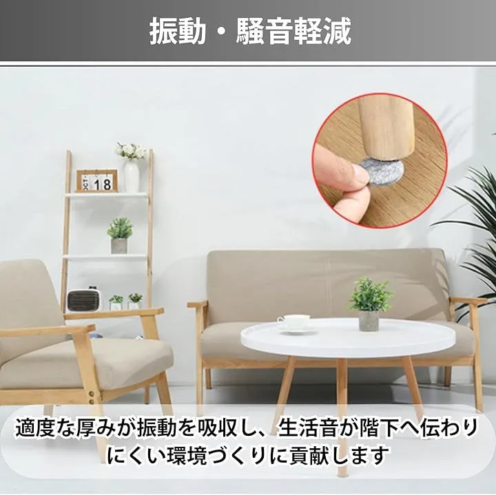 「振動・騒音軽減」適度な厚みのフェルトが振動をやわらげ、生活音が階下へ伝わりにくくなるようサポートします。