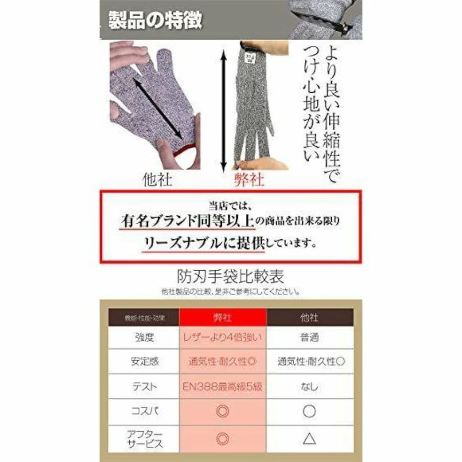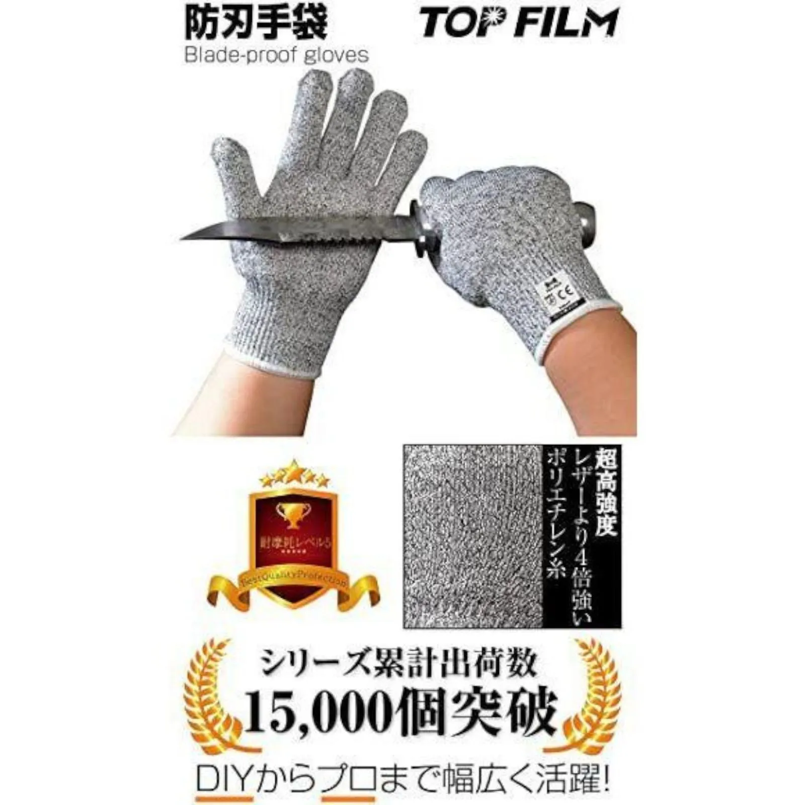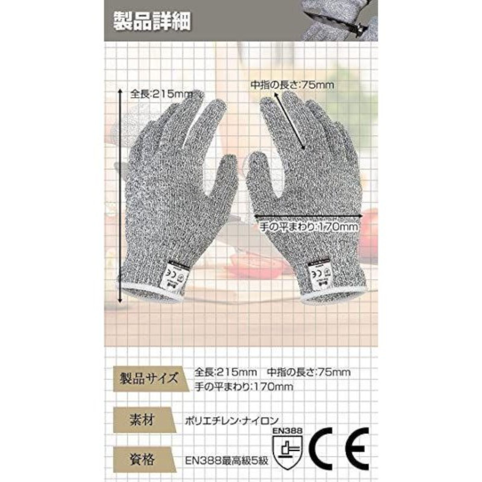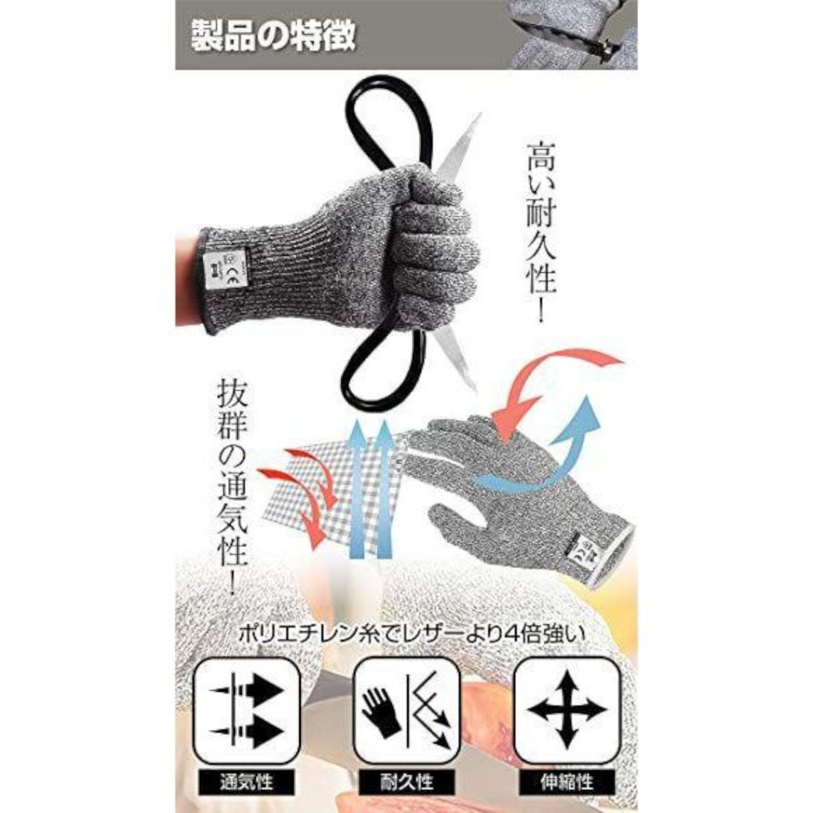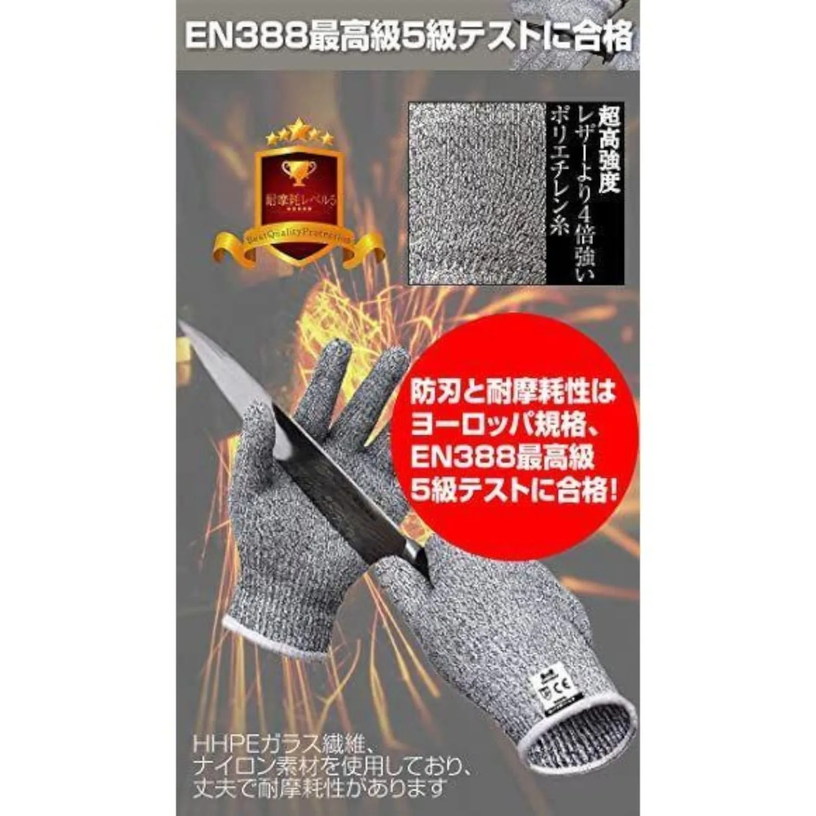 【テスト検査済み】 防刃と耐摩耗性は、ヨーロッパ規格、EN388最高級5級テストに合格しました。安心してご使用ください。