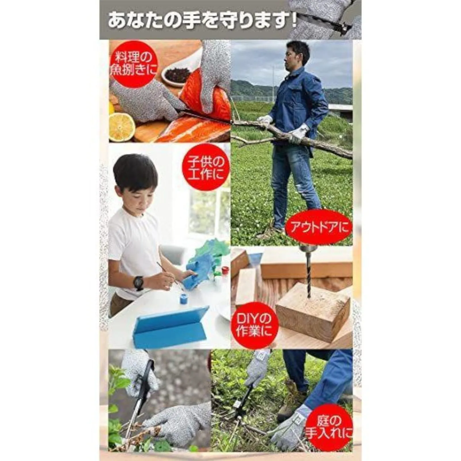 【色々な用途でご使用ください】 料理の魚裁き・子供の工作・アウトドア・DIY・庭の手入れなど、様々な状況からあなたの手を守ります。