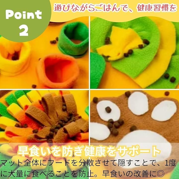 「早食いを防ぎ健康をサポート」 マット全体にフードを分散させて隠すことで、一度に大量に食べることを防止し、早食いを改善します。