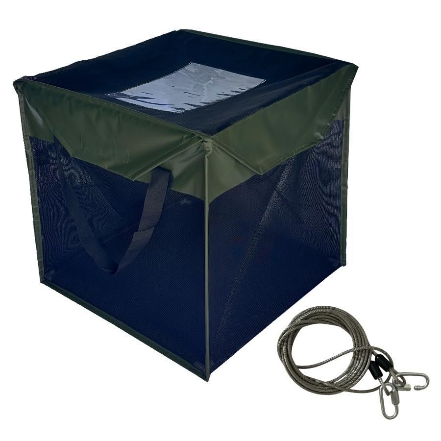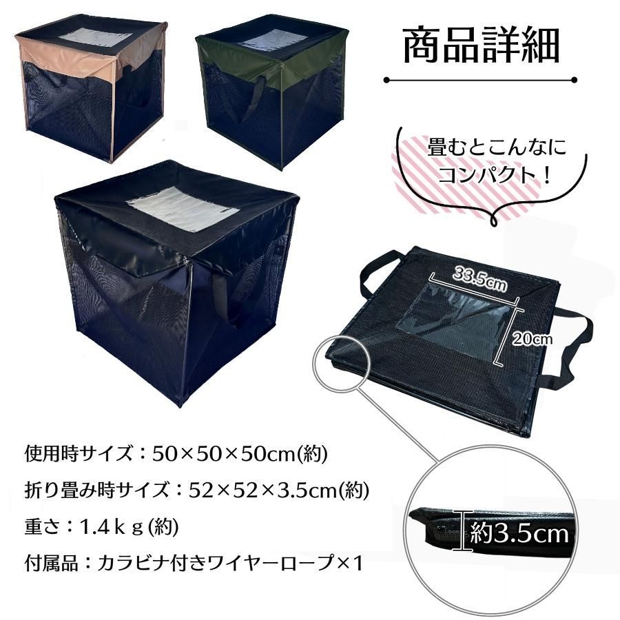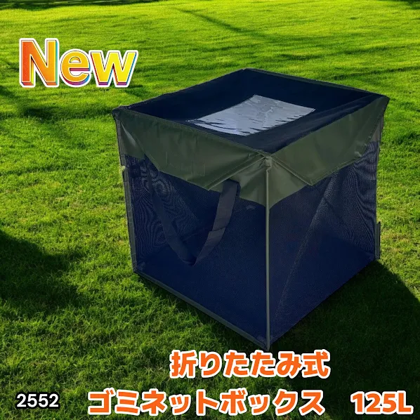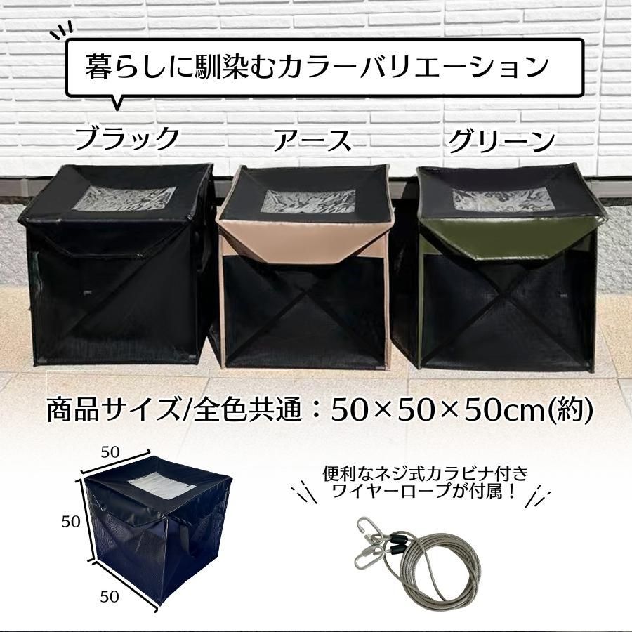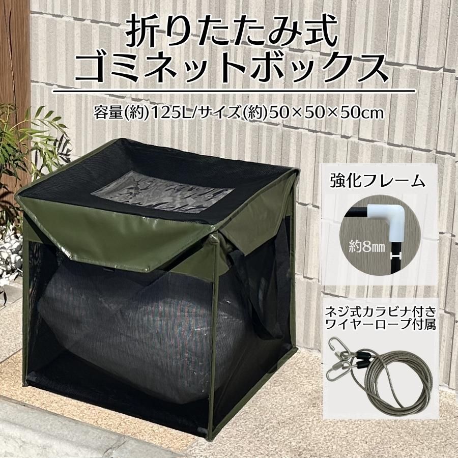 #2552 ゴミ ネット ボックス 約125L ダークグリーン 約50×50×50cm 蓋あり カラス除け ゴミ荒らし 防止 折りたたみ式 ゴミ収集 戸別 収集用 網箱 ※一部地域離島別途配送料有