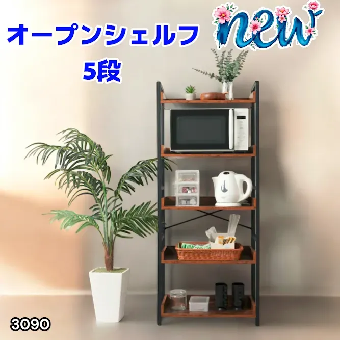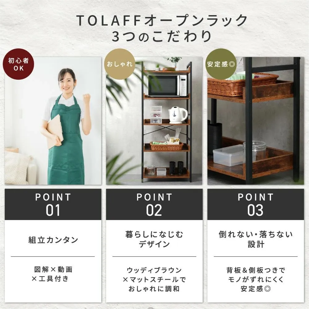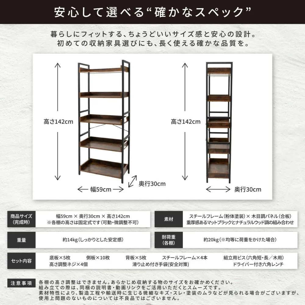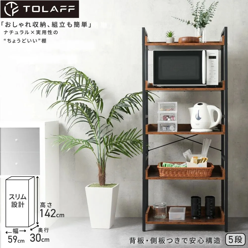 #3090 TOLAFF オープンシェルフ 木製 5段 幅60 スリム 北欧風 オープンラック 本棚 ディスプレイラック ナチュラル 組み立て簡単 ※一部地域離島別途配送料有
