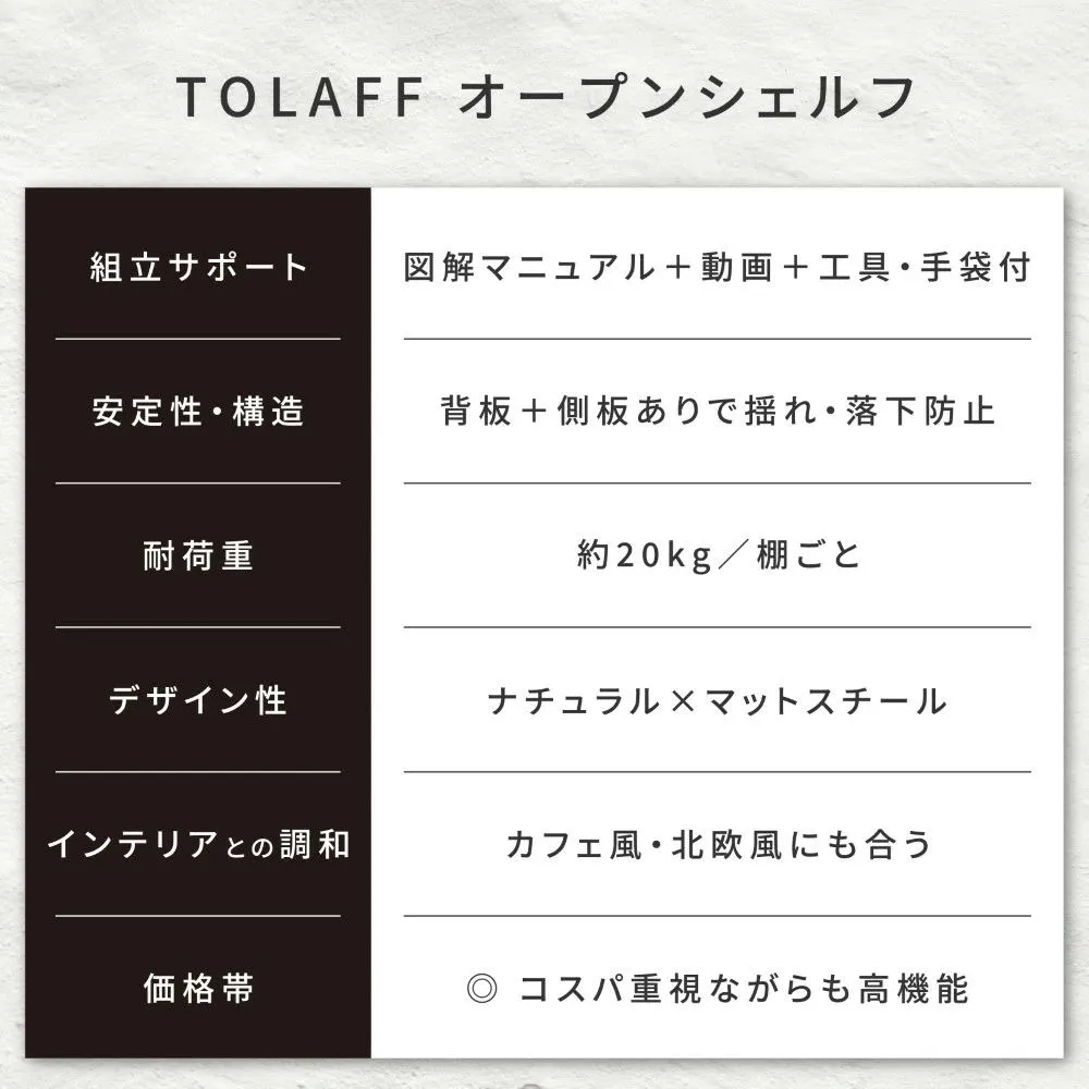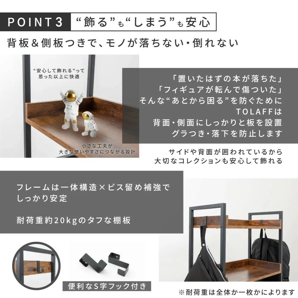 棚板はL型構造で、背面・側面にも板付き。