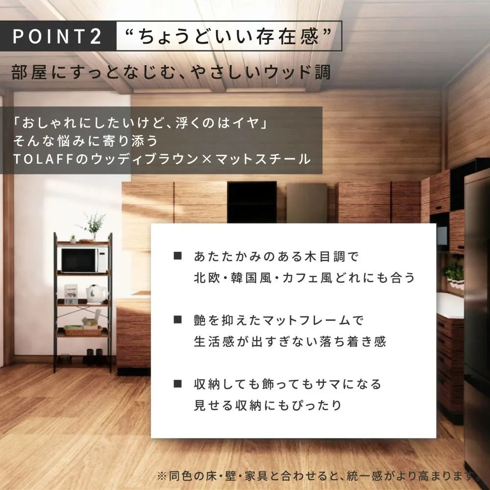 木製×ブラックスチールの組み合わせが