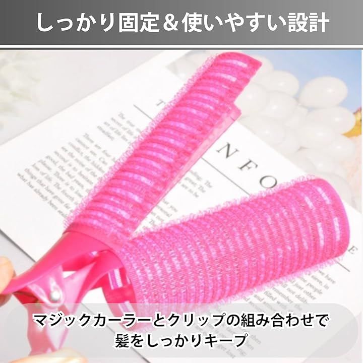「しっかり固定&使いやすい設計」マジックカーラーとクリップのダブル構造で髪をしっかりキャッチ。