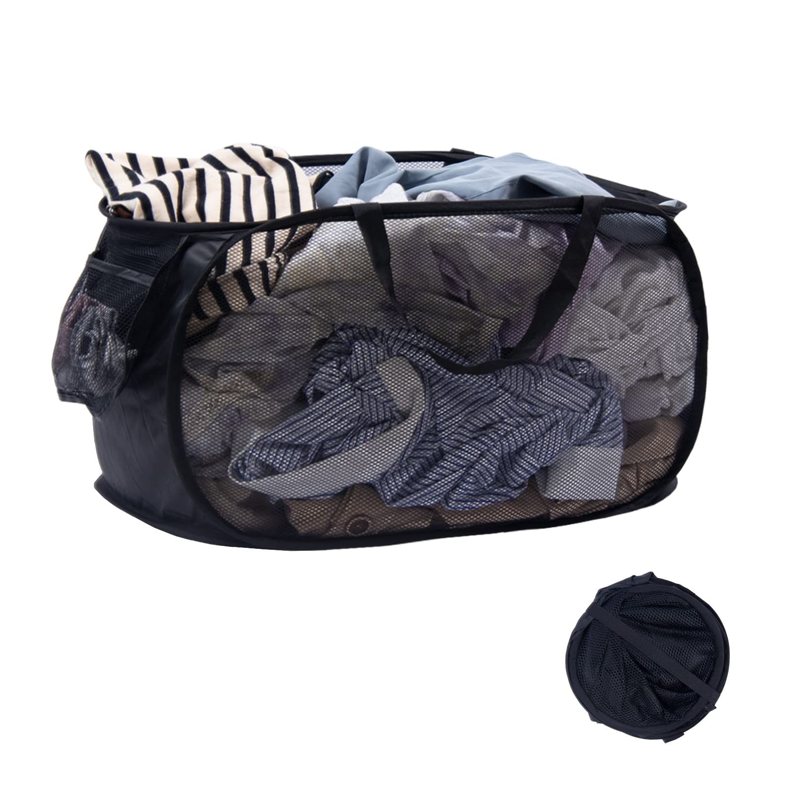 洗濯籠 洗濯物入れ ランドリーボックス ランドリーバッグ 収納 メッシュ 超軽量 大容量 70L 旅行 ランドリーバスケット 横型 持ち運び可能 折りたたみ 洗濯かご (黒) 洗濯カゴ