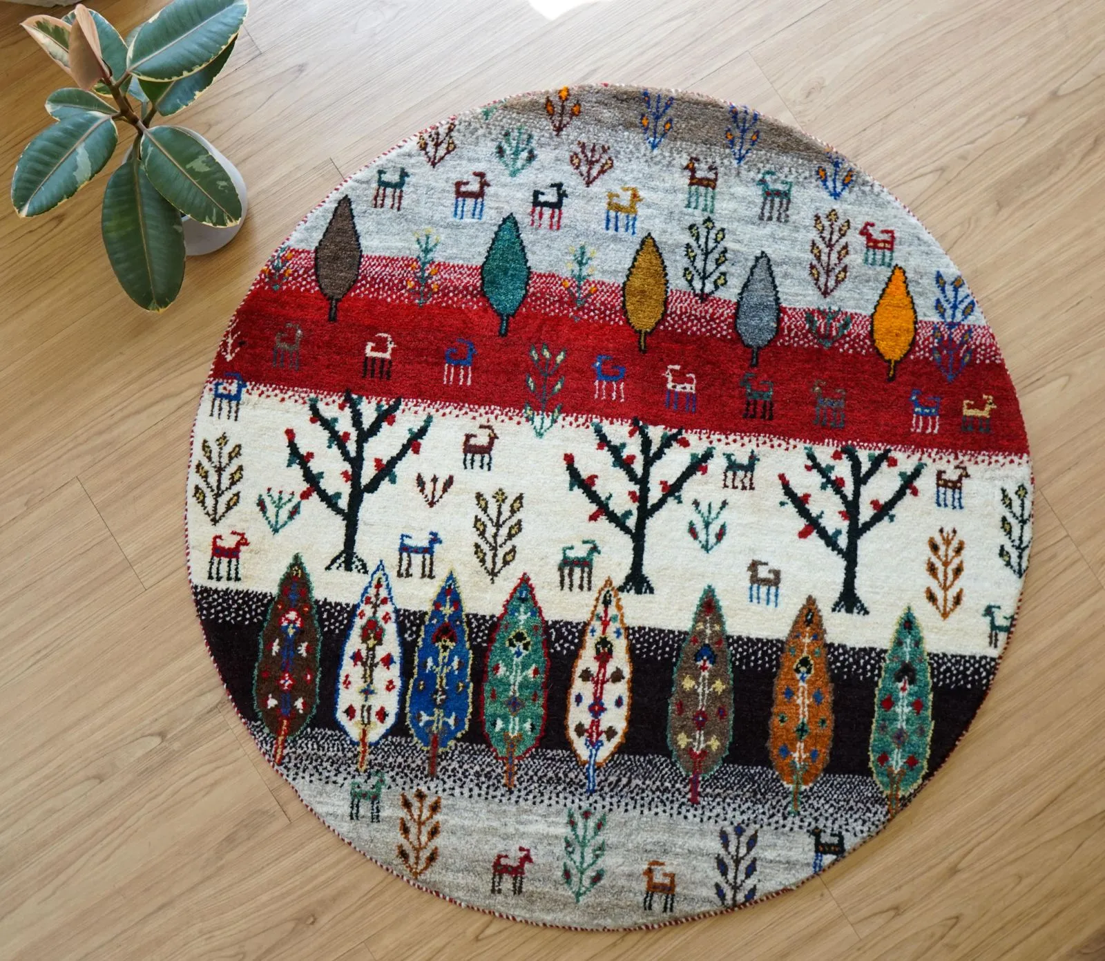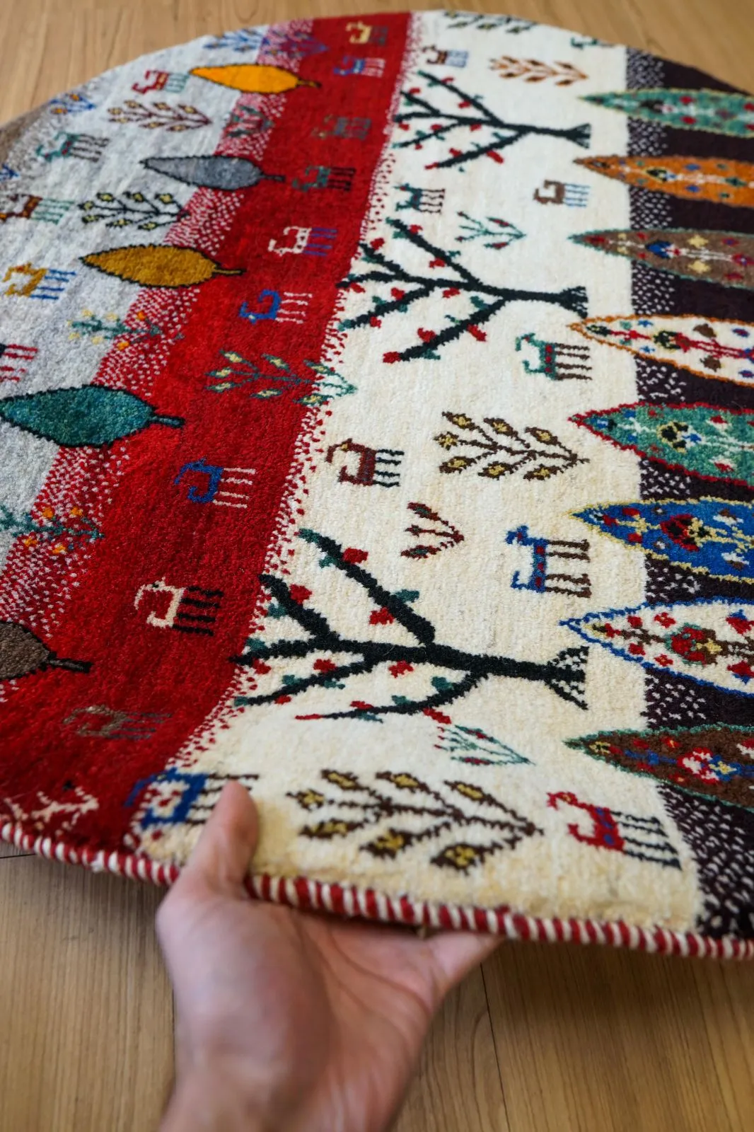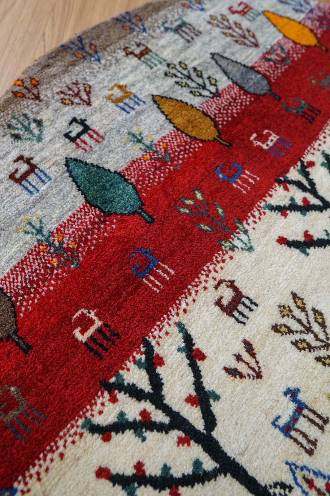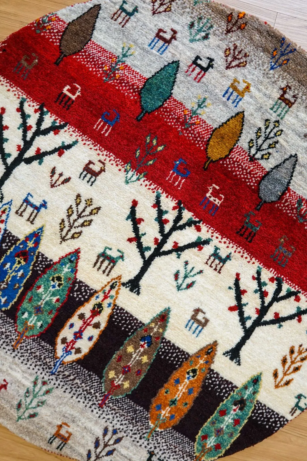 ペルシャ手織り カシュクリギャッベ 丸型 96cm丸|ウール100% 草木染め ラウンドラグ