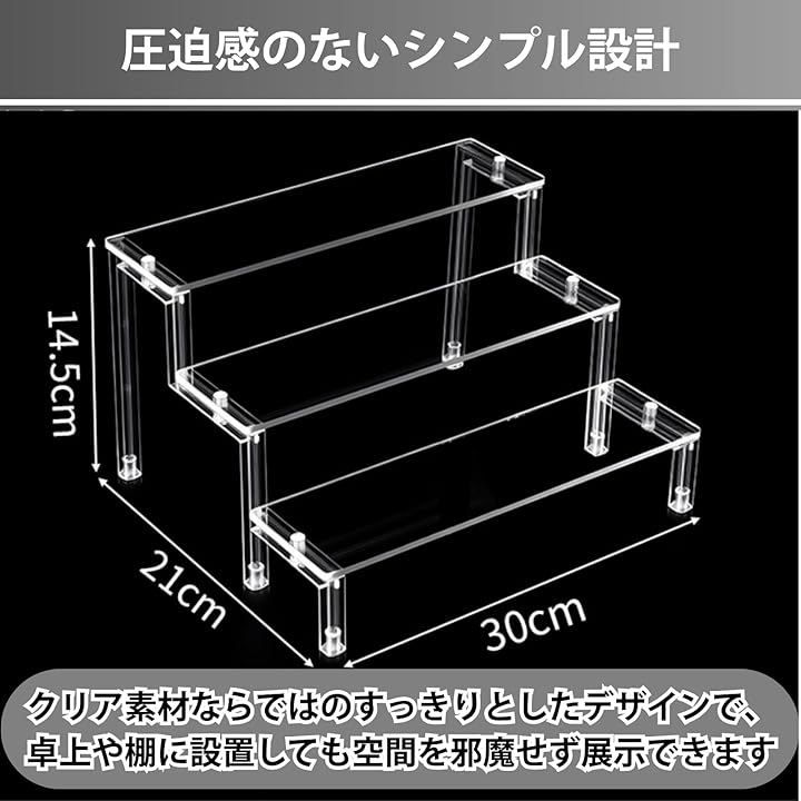 Aurenne ディスプレイスタンド アクリル フィギュア 棚 卓上 アクリルスタンド 飾り棚 小物 グッズ収納 ディスプレイ台 クリア 3段 (クリア)