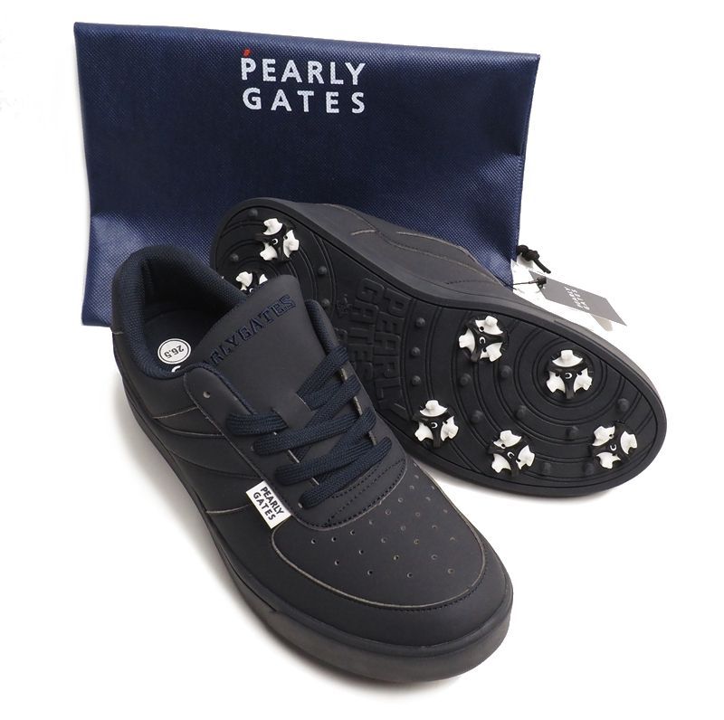 新品定価28600円 PEARLY GATES パーリーゲイツ エコレザー ソフトスパイク ゴルフシューズ27.5㎝濃紺(120) 収納袋付