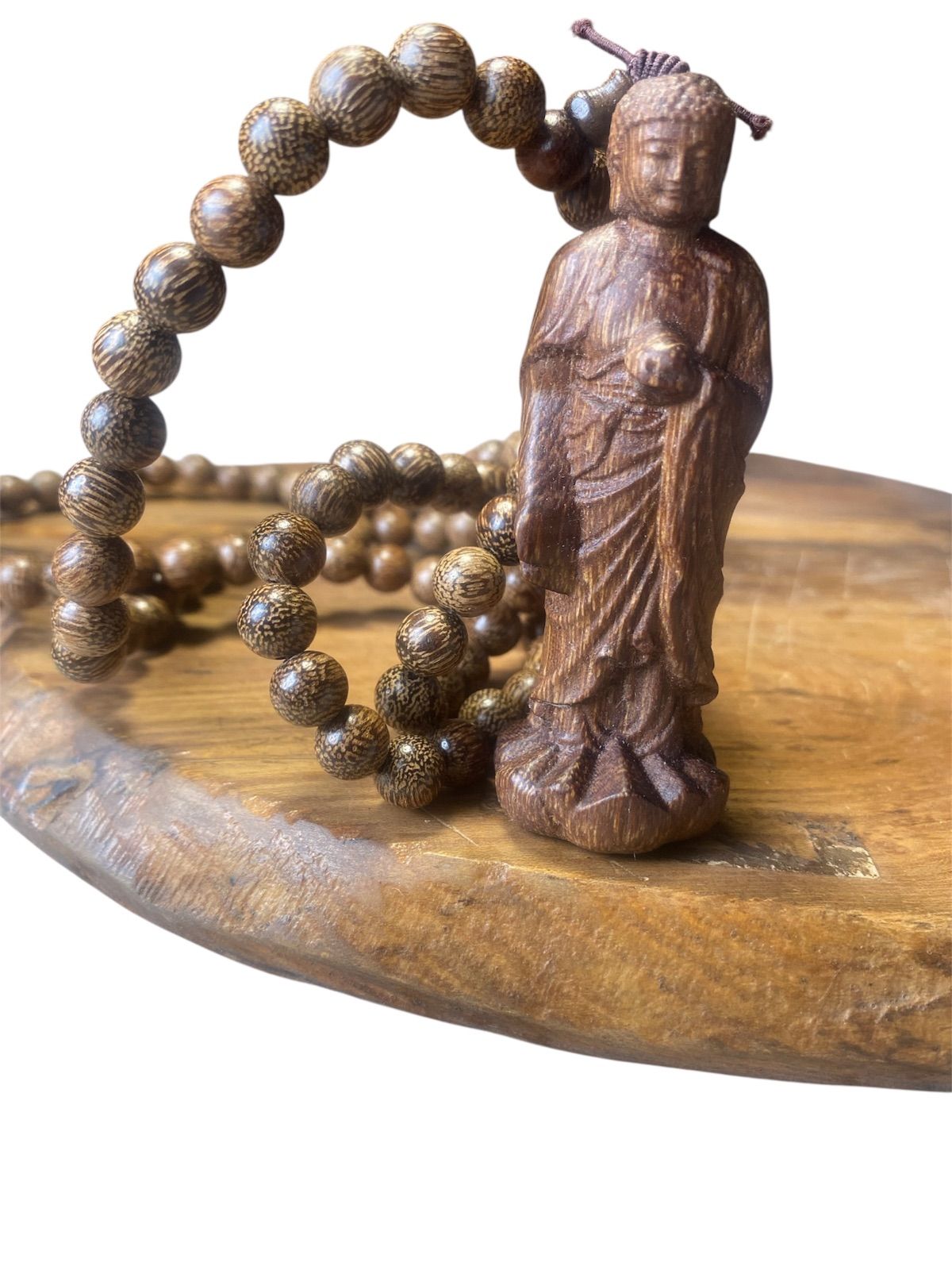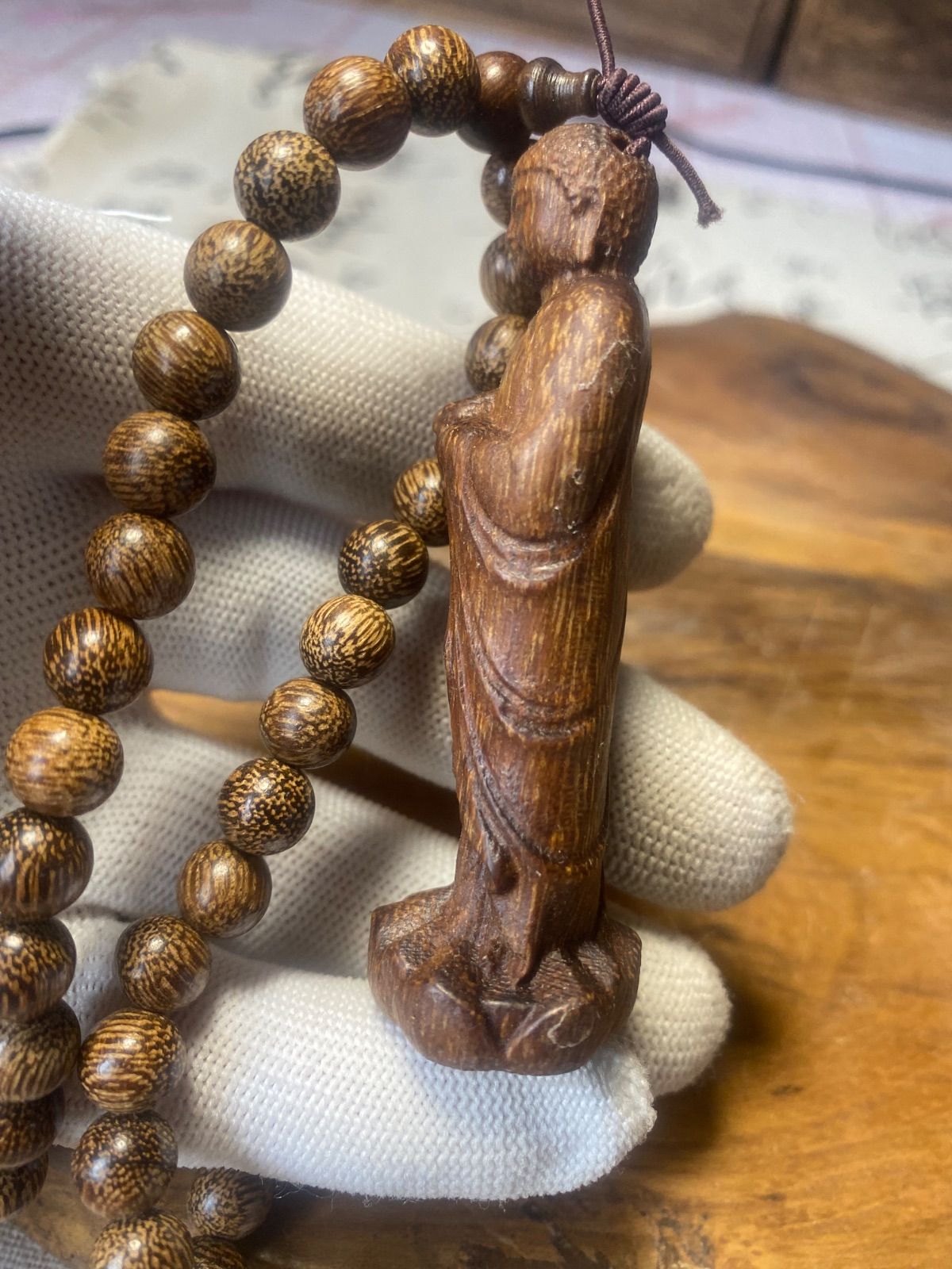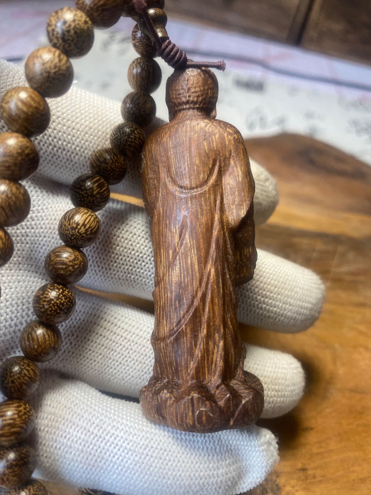 仏教美術 大日如来 古美術 仏像 サイズ7.5cm 御数珠 数珠繋ぎ ネックレス 極細工 沈香粒0.8cm お守り