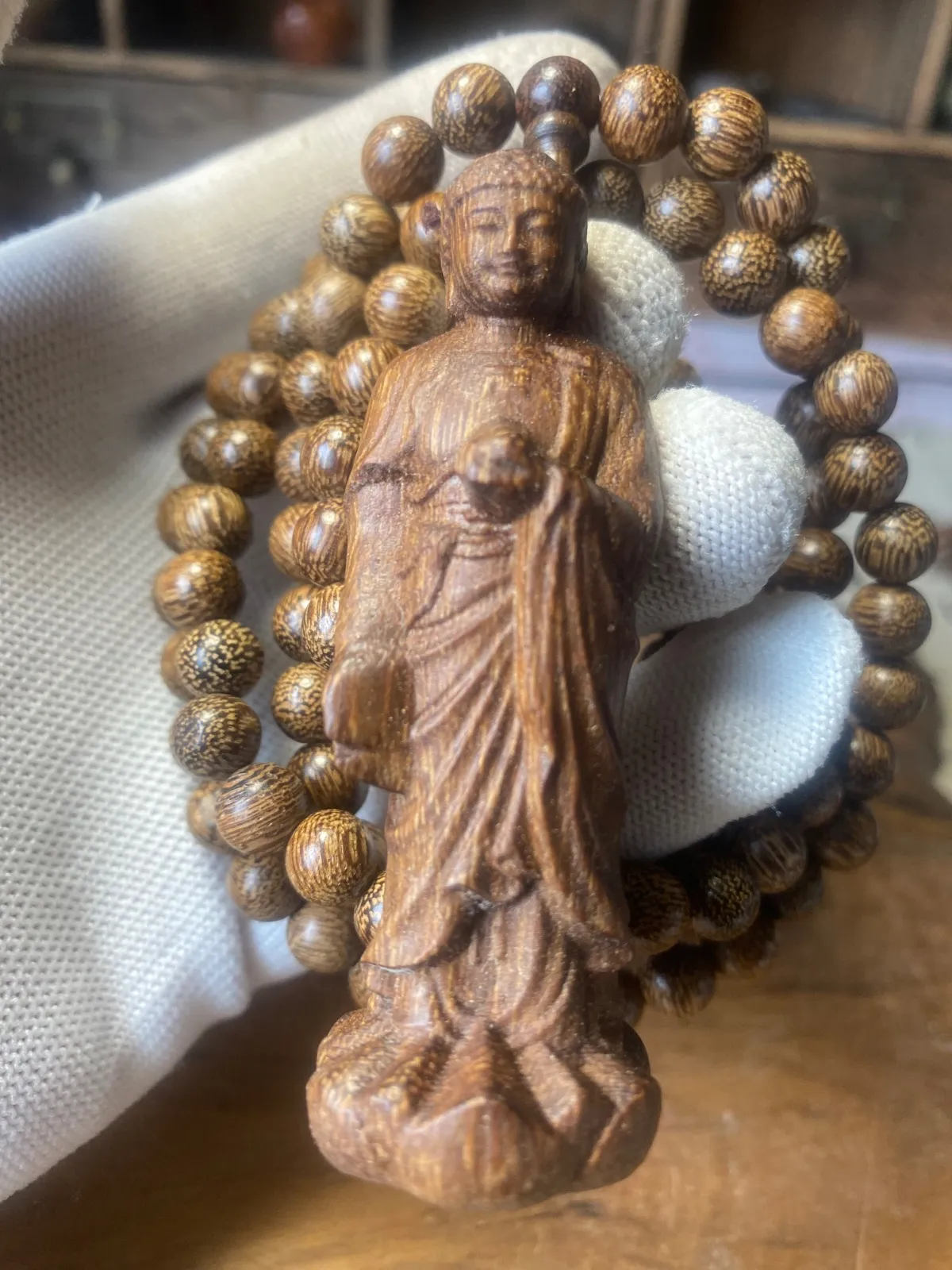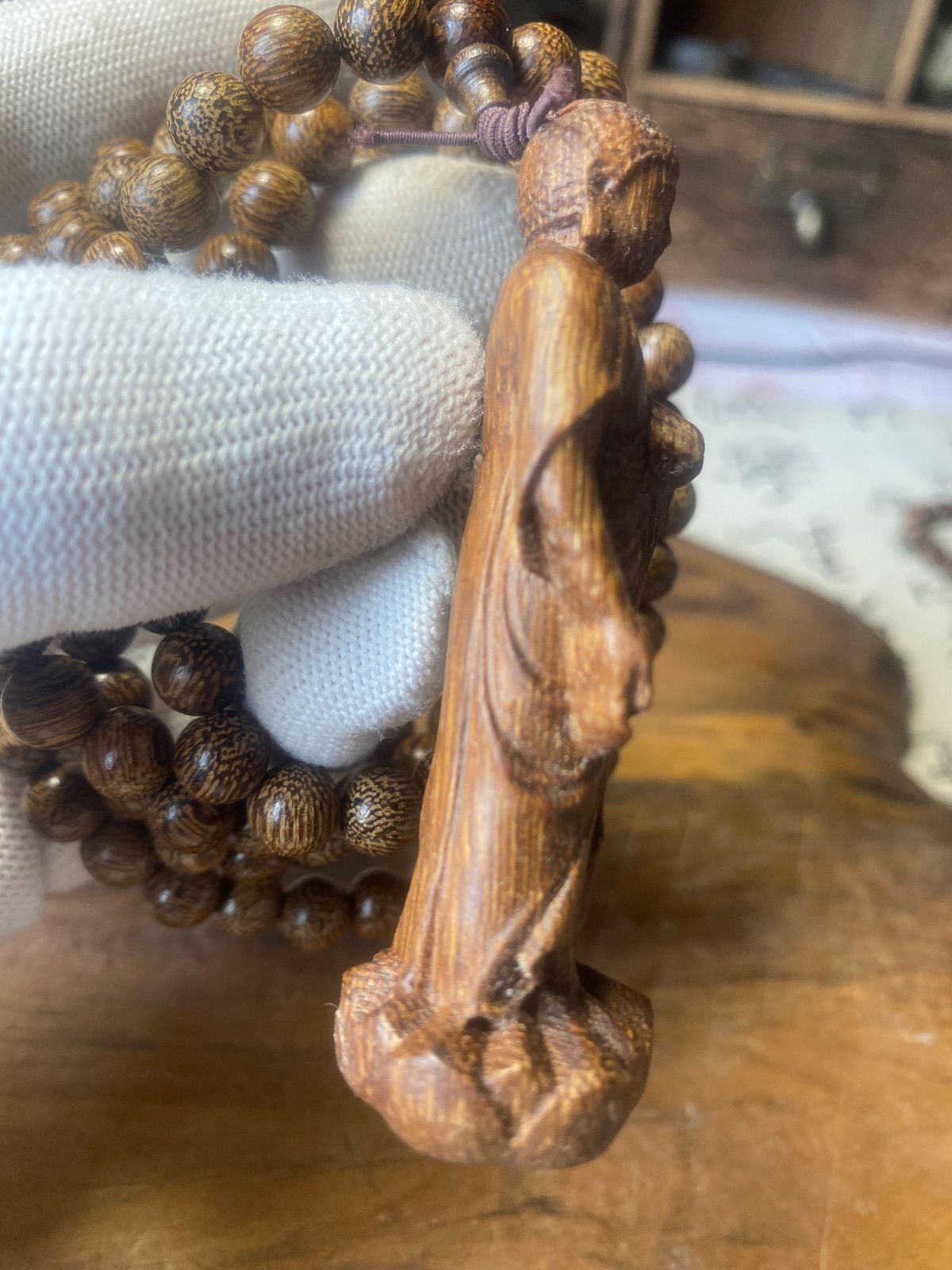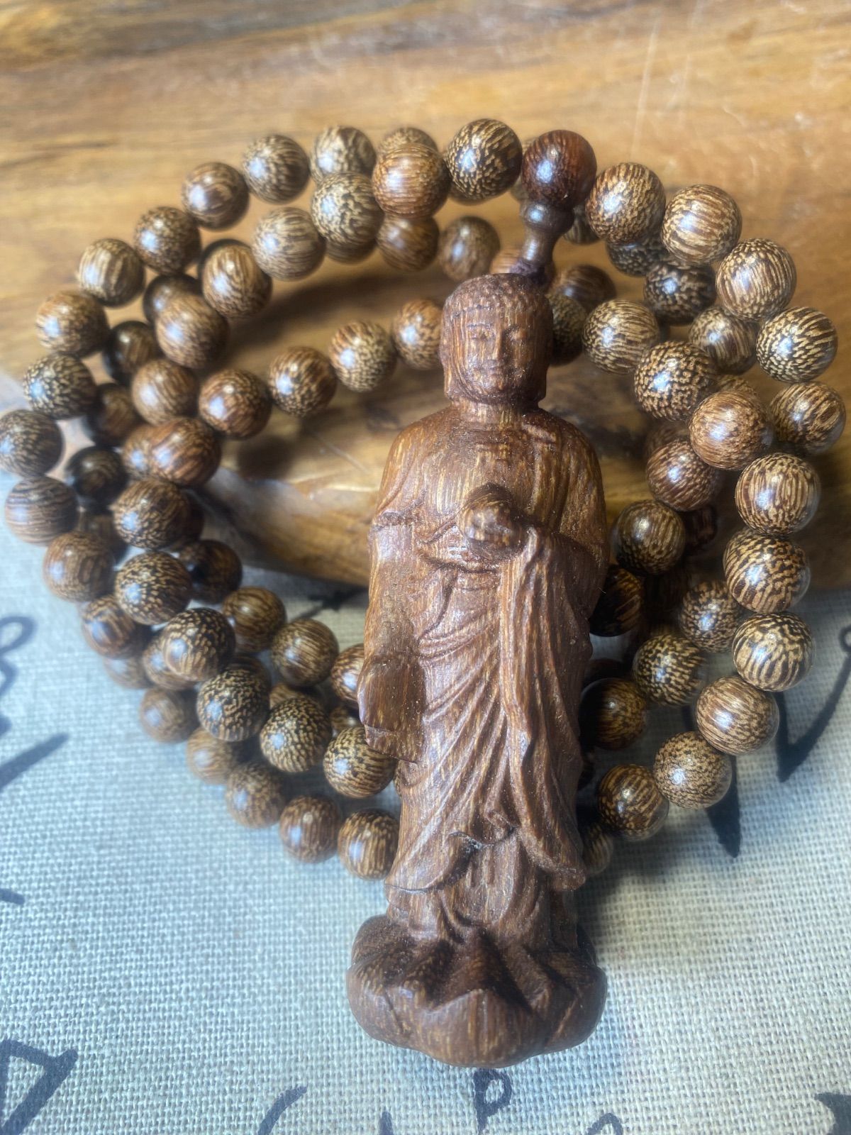 仏教美術 大日如来 古美術 仏像 サイズ7.5cm 御数珠 数珠繋ぎ ネックレス 極細工 沈香粒0.8cm お守り