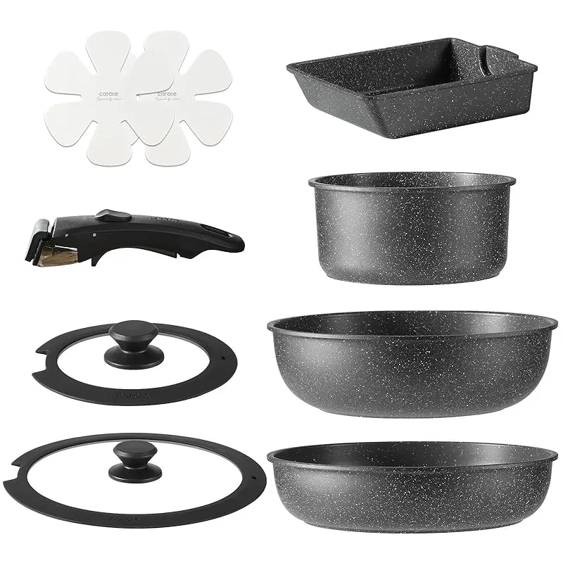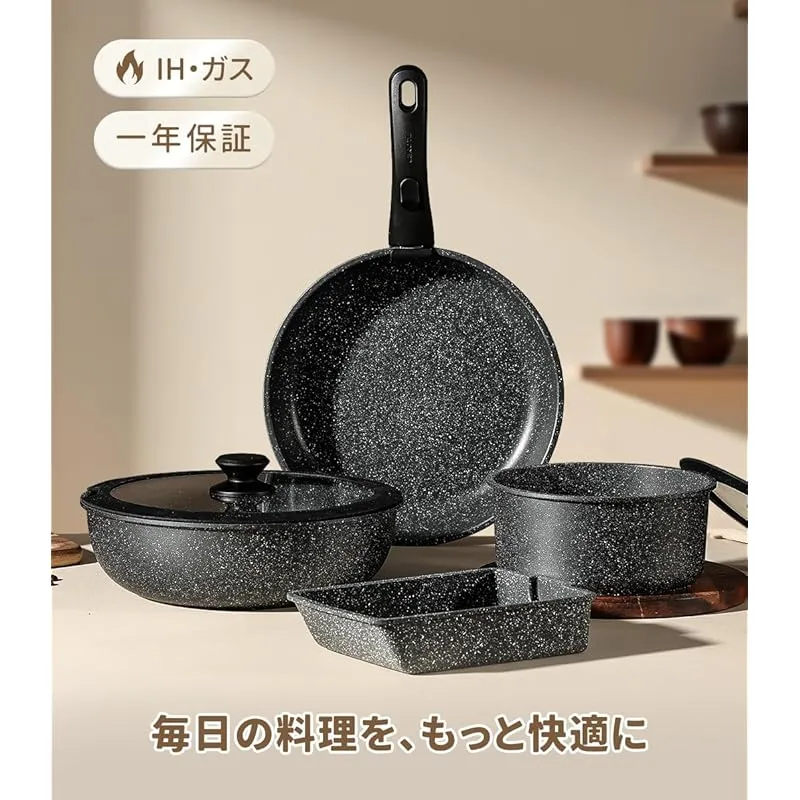 【新品】 CAROTE カローテ フライパン セット 9点 IH・ガス火対応 PFOA PFOS フリー 鍋セット 取っ手のとれる 卵焼き器 マーブルコート スルスルすべる くっつくことがなく手入れ簡単 一年 黒 ブラック EWシリーズ 製造元:CAROTE 商品番号:J08886 商品内容:9点-ブラック 色:ブラック