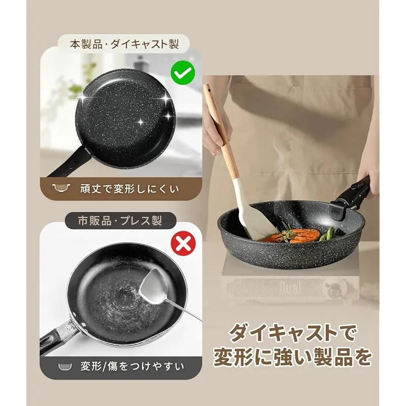 【軽量化に工夫】本体はアルミダイキャストで作られ、変形に強くて耐久性に優れています。軽量設計されたため、お調理の時もお手入れの時も非常に使いやすく手が疲れにくいです ??