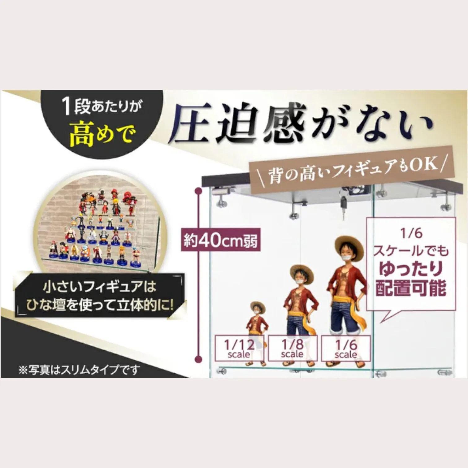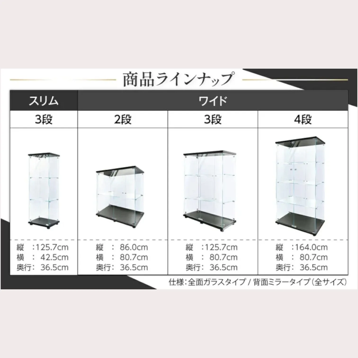 【ガラスコレクションケース・ワイドタイプ】✨ 支柱のないシンプル設計で、どの角度から見てもコレクションの魅力を邪魔しません。 縦長の長方形タイプのため横幅を取らず、ご家庭のインテリアはもちろん、店舗の展示ケースとしても活躍する大型コレクションケースです。