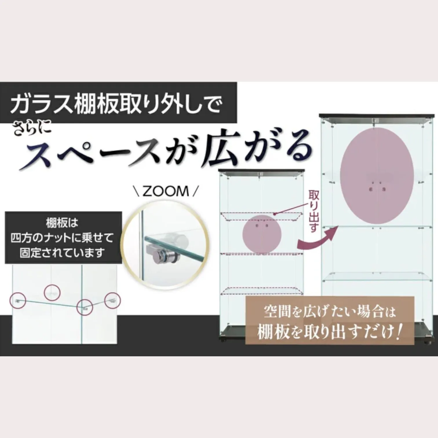 【強化ガラス使用】🛡️ 大切なコレクションの展示に適した丈夫な強化ガラスを採用。 万が一割れた場合も鋭利な破片になりにくく、細かな粒状になるため安心です。 さらに、ガラスの角は丸く研磨加工されており、手を切りにくい設計です。