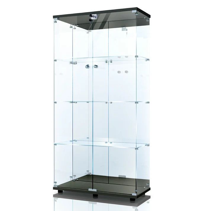 【商品仕様詳細】📐 カラー:ブラック サイズ:幅80.7×奥行き36.5×高さ164cm 本体重量:60kg ガラスの厚み:4mm ガラス(棚)板の耐荷重:5kg 材質:強化ガラス・パーティクルボード ※組み立て作業は2人以上で行ってください(所要時間:約80分)
