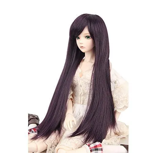 ダークパープル Tanoshowたのショー13ドール用ウィッグ ストレート ロング ダークパープル 綺麗 人形用ウィッグ 頭周り約 8-9 インチ2224cm BJD SD用 髪 耐熱 180℃ 高温ウィッグ ダークパープル
