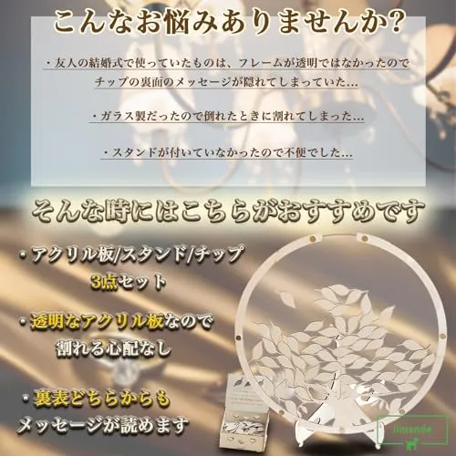 【limande】 ウェディングドロップス 芳名帳 結婚式 木の葉型 ウェルカムボード 結婚証明書 ゲスト 参加型 チップ60枚付き