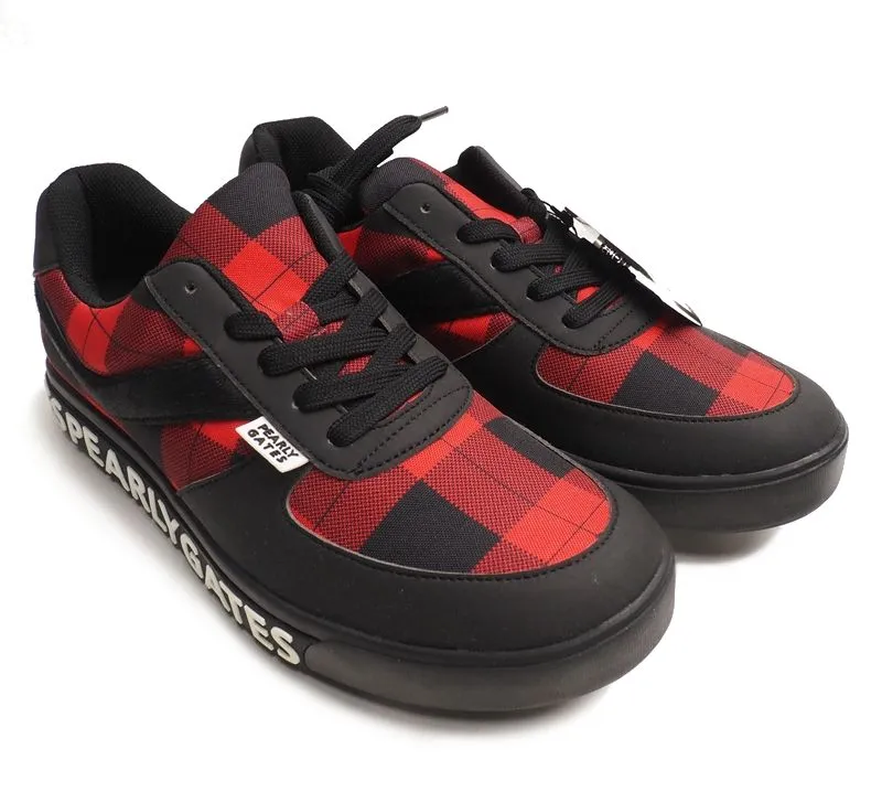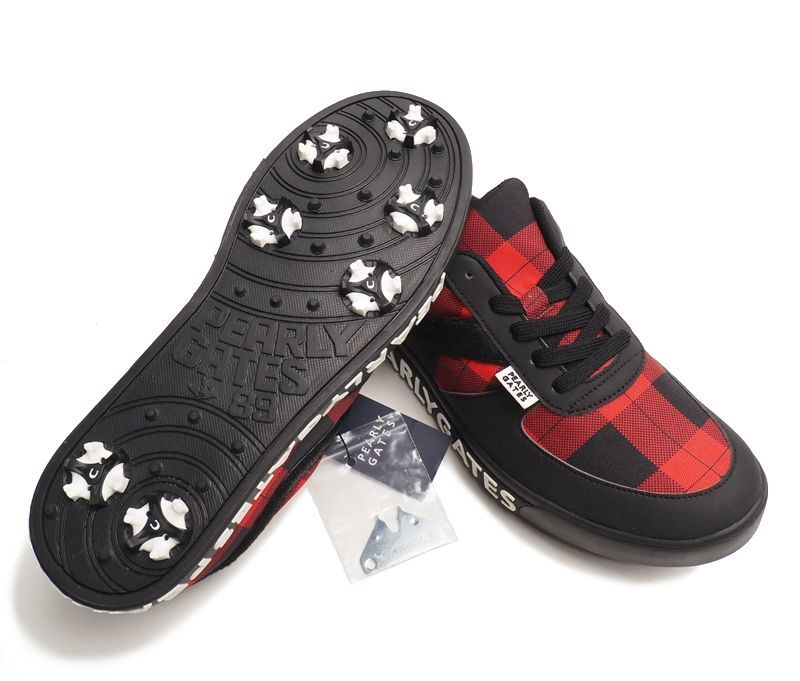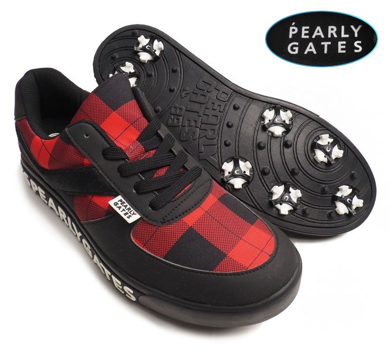 新品定価37400円 PEARLY GATES パーリーゲイツ バッファローチェック ソフトスパイク ゴルフシューズ/スニーカー27cmレッド(102)