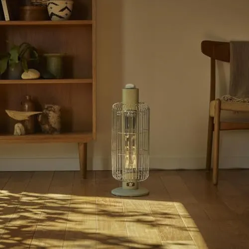 鳥かごを連想させる可愛らしいフォルムが特長。熱源にはアラジン独自の技術である「遠赤グラファイト」を採用しており、どんなに寒い環境でも0.2秒ですばやく暖まります。
