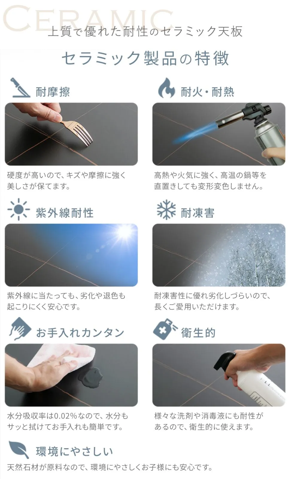 ■上質さと高耐性で人気のセラミック天板を使用した、高級感のあるオシャレモダンなデザインです。