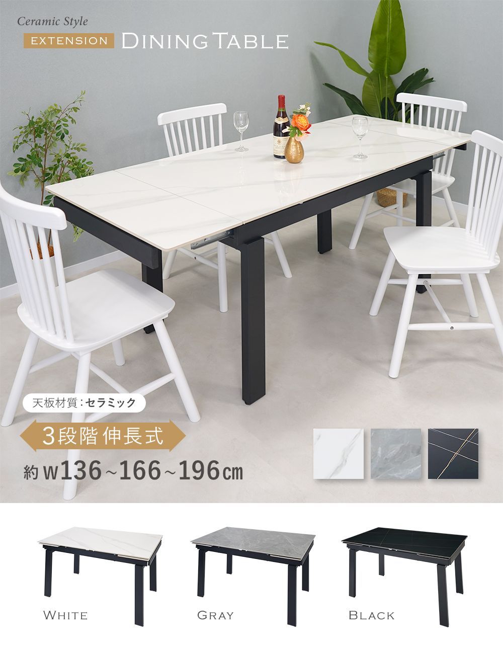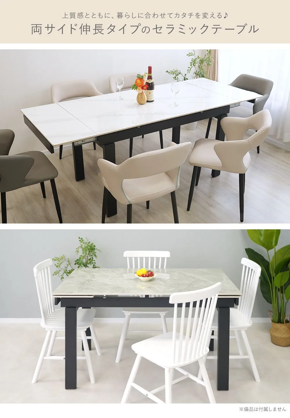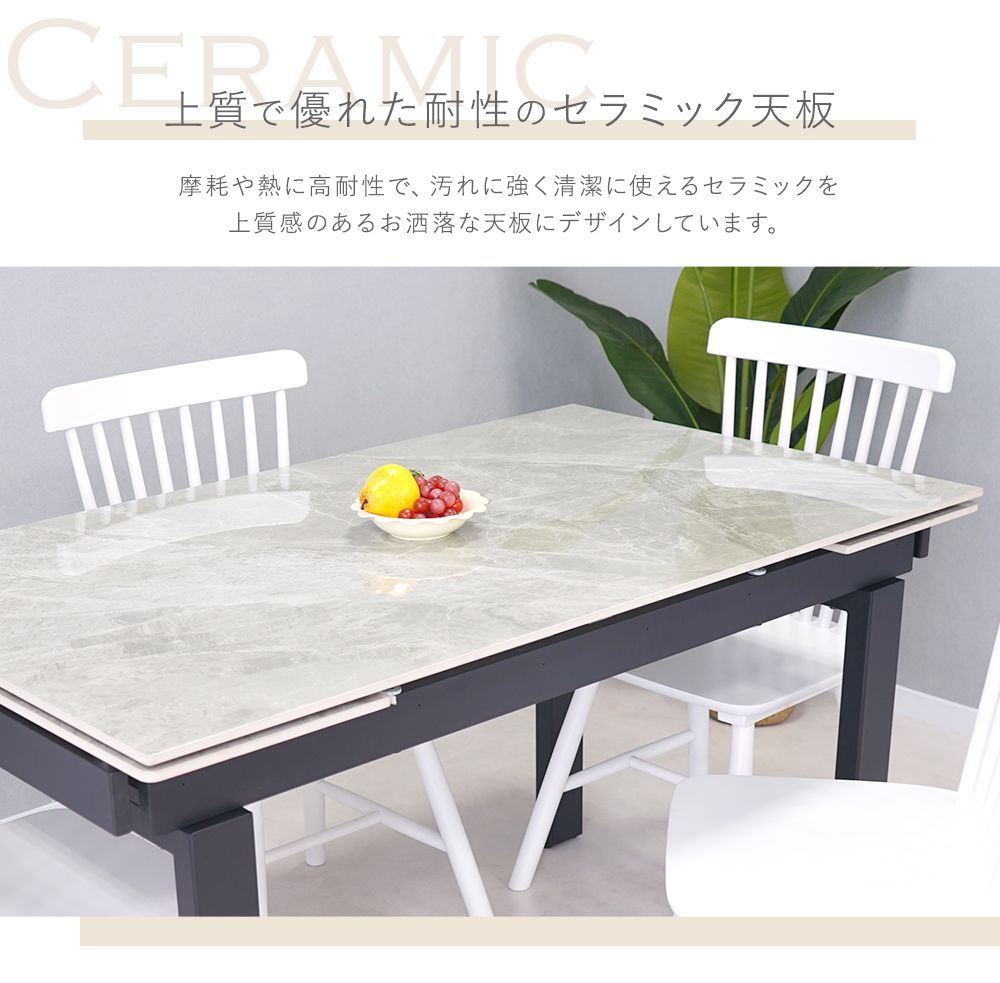 ダイニングテーブル セラミック 人工大理石 単品 伸長 伸縮 拡張 伸びる フレキシブル 鉄 幅広 140 170 200 2人 3人 4人 4人掛 6人 6人掛 高級 天板 耐荷重約80kg 耐熱 大理石調 ダイニング 食卓 dtablet95(ホワイト)
