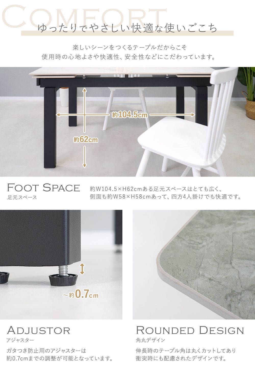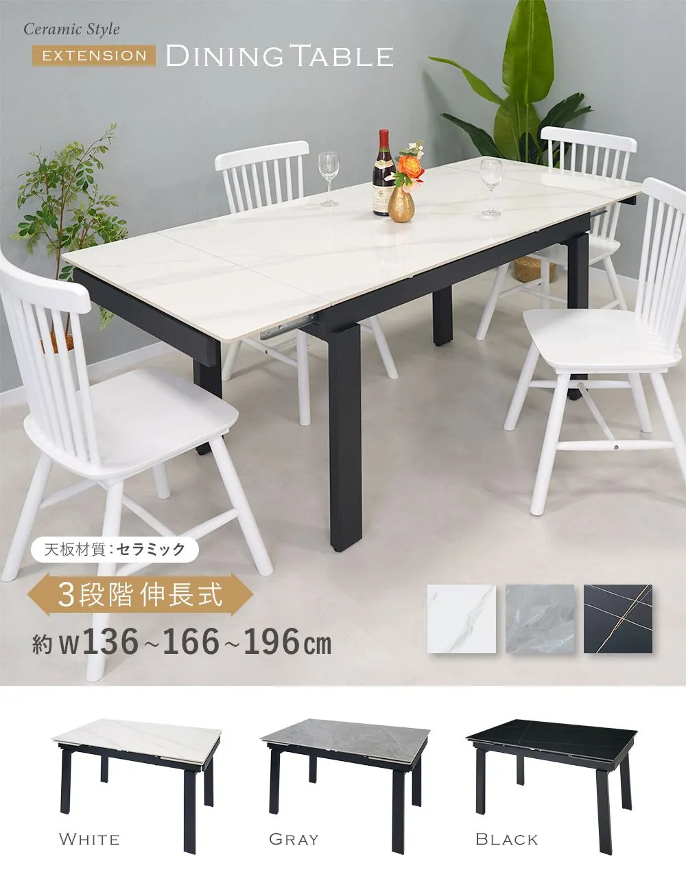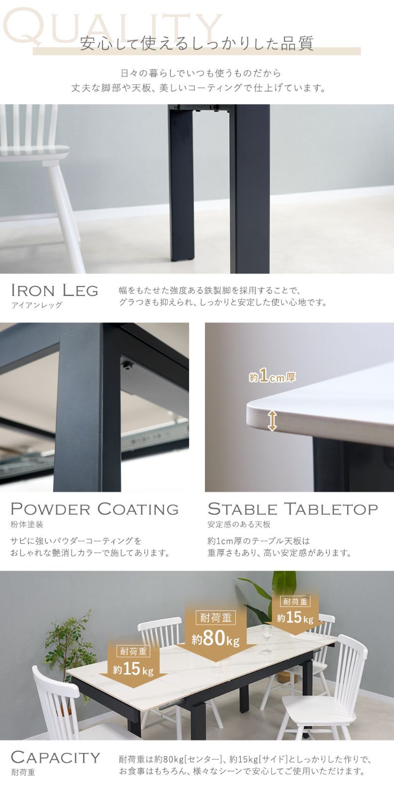 ダイニングテーブル セラミック 人工大理石 単品 伸長 伸縮 拡張 伸びる フレキシブル 鉄 幅広 140 170 200 2人 3人 4人 4人掛 6人 6人掛 高級 天板 耐荷重約80kg 耐熱 大理石調 ダイニング 食卓 dtablet95(ホワイト)