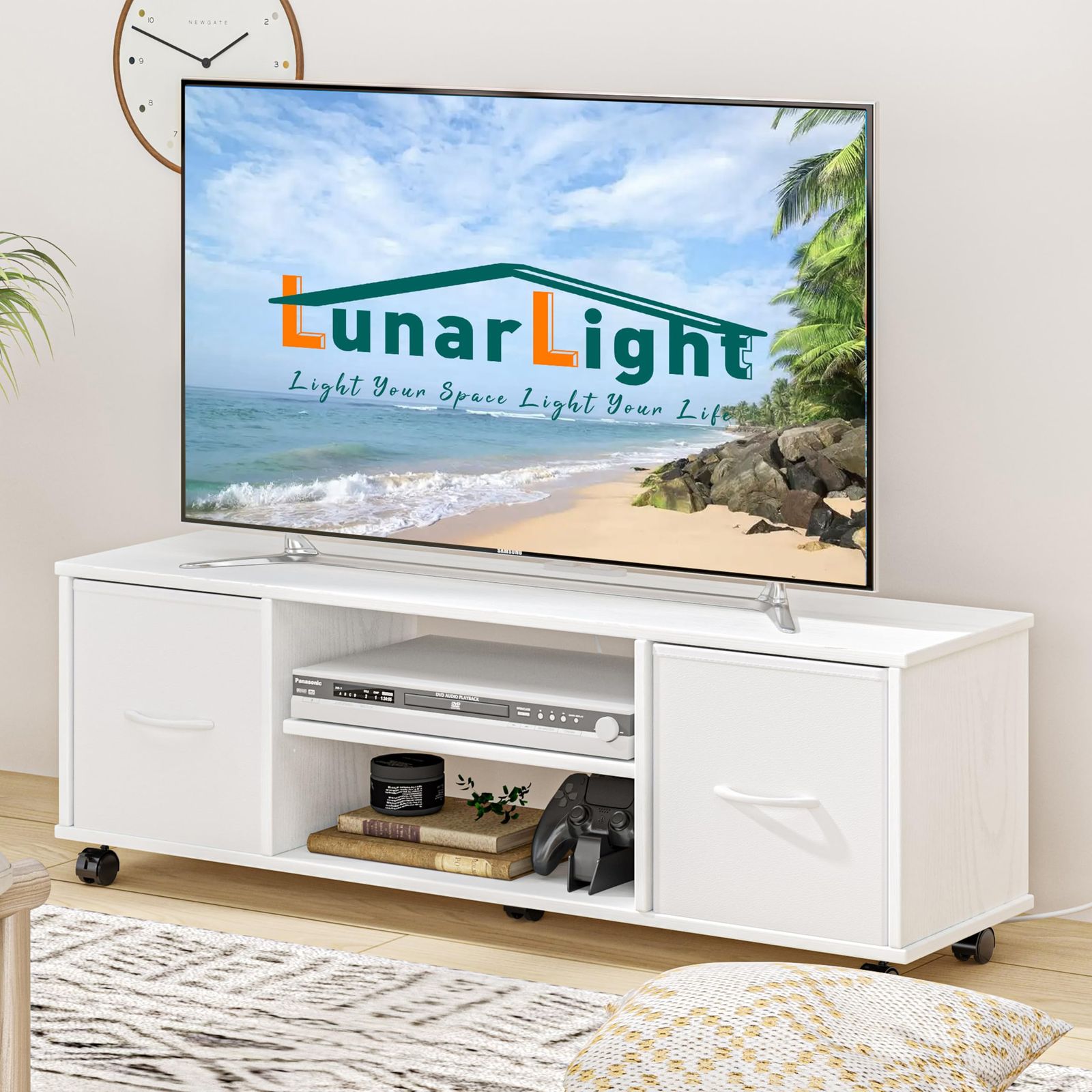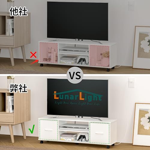 【オペレーション機能】移動式ストッパー付きキャスターを備えており、いつでも簡単に移動でき、日常の配置変更も柔軟に対応できます。キャスターを使用しない場合には、付属のフェルトを底板に貼れば、床板の傷防止にも対応でき、床面を守りながら長くお使いいただけます。テレビ台やローボードとしても幅広く活用でき、家庭の様々な場面で便利にお使いいただけます。