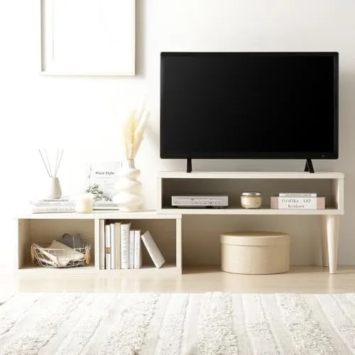 RASIK テレビ台 ローボード 伸縮 幅75~133cm 木目ホワイト オープン 収納 コーナータイプ レイアウト 自由 お客様組立 Aureva オーレヴァ