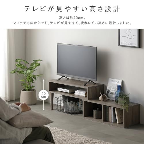 【お部屋に合わせて自由に変形可能】伸縮可能/角度調整可能/天板左右設置可能。間取りに合わせてレイアウトが自由にできるフレキシブルなテレビ台。