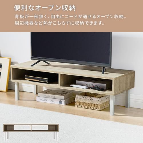 ぼん家具 テレビ台 テレビボード ローボード 42型対応 幅95.2×奥行33.7×高さ28.8cm 脚付き 取り外し可能 オープンラック 収納棚 リビング ホワイト