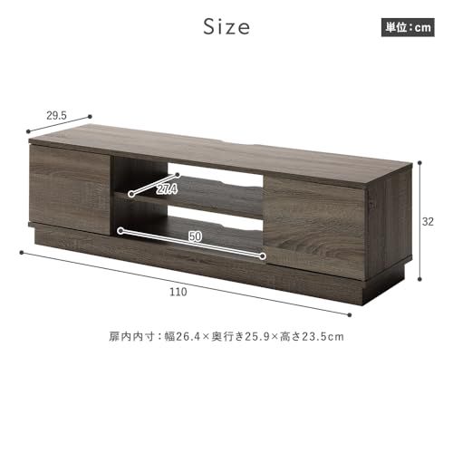 RASIK テレビ台 ローボード 110cm幅 ナチュラル 43型対応 壁置き 扉付き 収納 お客様組立 Velsta ヴェルスタ