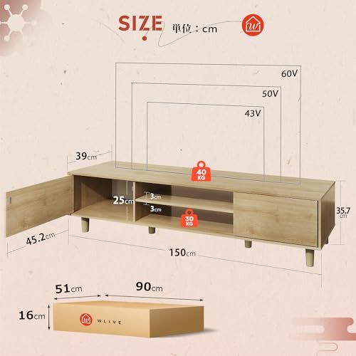 WLIVE テレビ台 扉付き テレビボード ローボード 幅150cm tv台 ロータイプ tv台 収納 大容量 tvボード 50型対応 60型対応 avボード 木製 おしゃれ リビング 寝室 ADSG619 ナチュラル