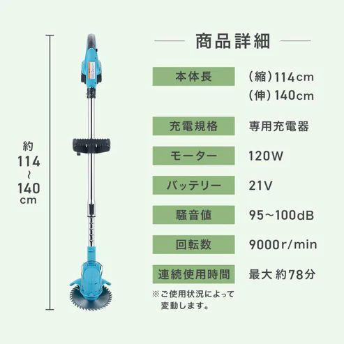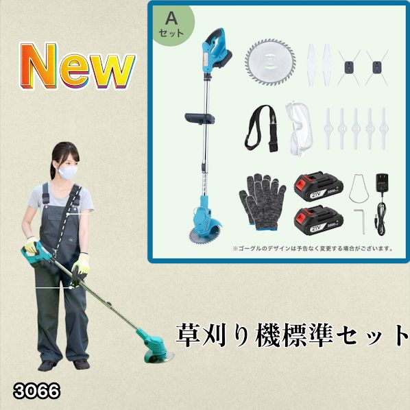 #3066 草刈り機 標準セット Aセット 充電式 コードレス 草刈り機 角度調整 替刃付き 枝切り 芝生庭 畑 雑草 草 植木 刈払機 伸縮 長さ114~140cm ※一部地域離島別途配送料有