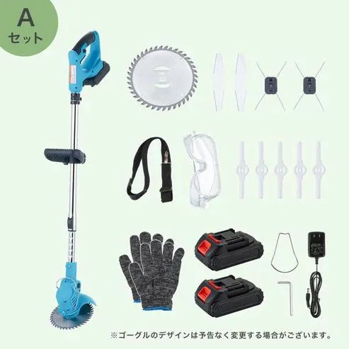 【📦セット内容:Aセット(標準セット)】 ・本体×1 ・バッテリー(2000mAh)×2 ・充電器×1 ・ナイロンコードカッター×2 ・ナイロン製ブレード×5 ・スチールブレード×2 ・チップソー×1 ・フロントガード×1 ・飛散防止カバー×1 ・補助ハンドル×1 ・ストラップ×1 ・ゴーグル×1 ・手袋×1 ⚠️注意事項⚠️ ✅️多少の汚れや擦れなどがある場合がございます。元箱などにも若干のスレや汚れ等がある場合がございますがご容赦下さい。 ✅️入荷時期により色味や濃淡が異なる場合がございます。 ✅️画像の商品は光の照射や角度、撮影状況、お使いのモニター環境により、実物と色味が異なる場合がございます。 🛒当ショップ運営について🛒 ✅️こちらの商品はお客様の都合(サイズ・型番・カラー違い等)での返品や交換は受け付けておりませんのでご理解お願い致します。 ✅️同時に他のショップやフリマ等にも出品しておりますので、同じタイミングでご購入される場合もございます。その場合、先にご購入された方を優先しての販売となります。 ✅️当ショップ運営時間や休日の都合で大変申し訳ございませんが、2〜7日間ほどお時間が経ってキャンセルになる場合もございますのでご了承下さい。 ✅️当社は土日祝日、GW、お盆、年末年始は休みになっております。休日にいただいたコメントの返信や商品の発送などは翌営業日の対応になります。 ✅️当ショップの運営方針や説明欄をお読み頂き、ご理解ご納得いただいた上でご購入お願い致します。 最後までご覧いただきましてありがとうございました✨️