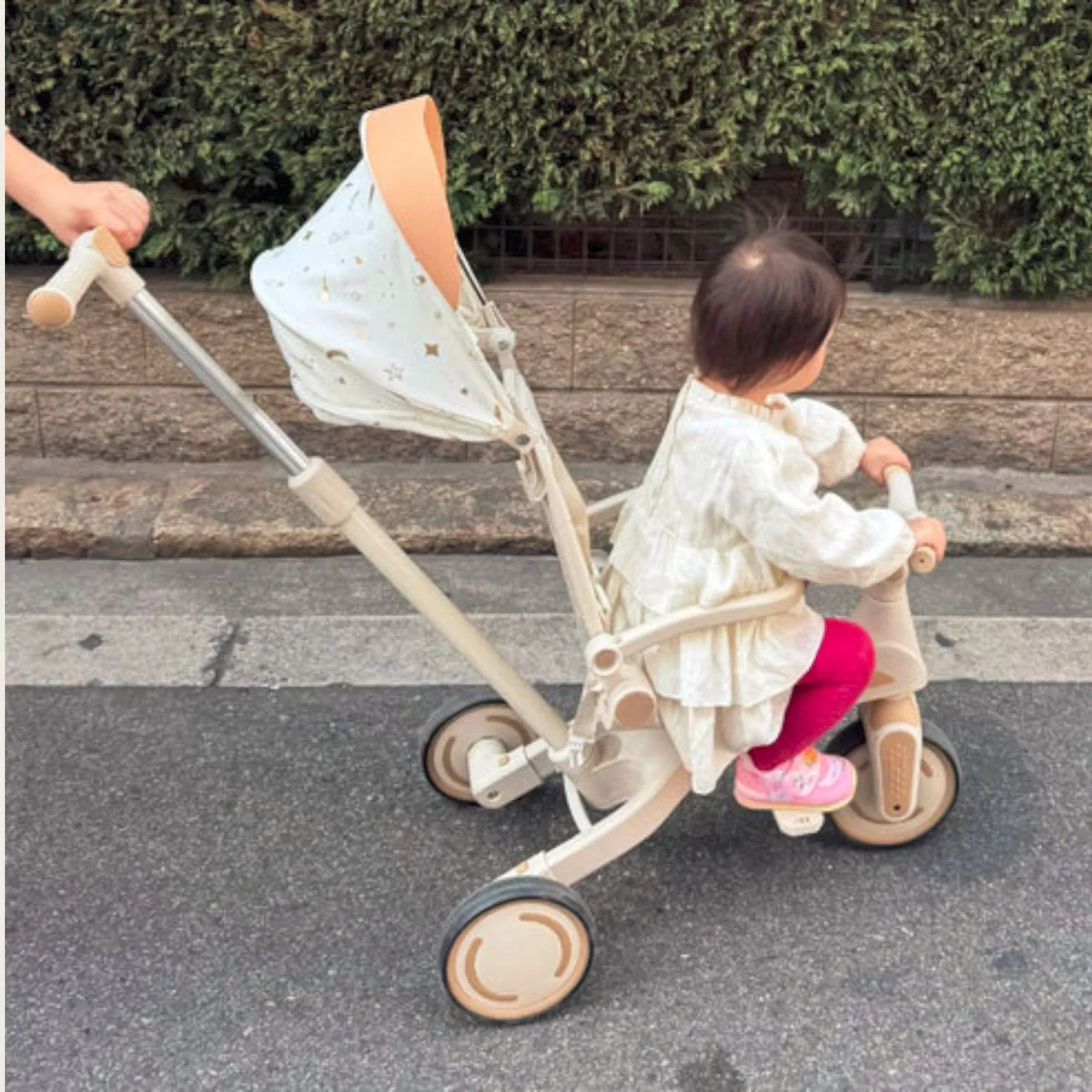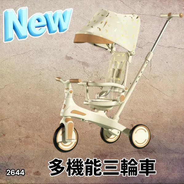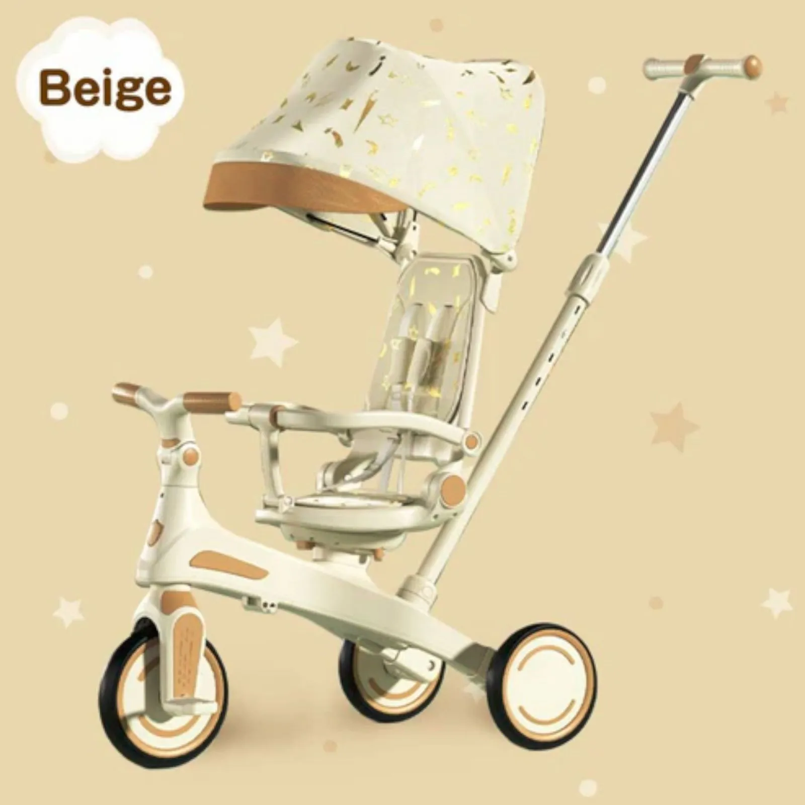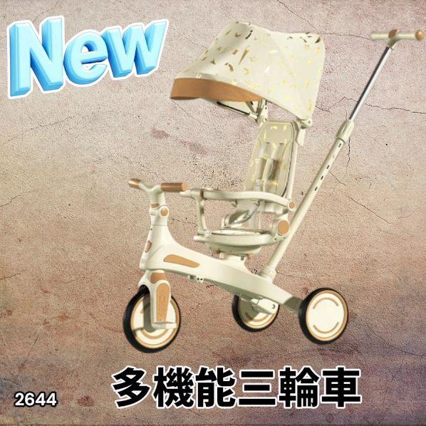 #2644 キッズ バイク 子供 三輪車 ベージュ 折りたたみ 1~5歳 安全シートでしっかり固定 3点式股ベルト付き 手押し棒付き 7in1 自転車 ランニングバイク ※一部地域離島別途配送料有