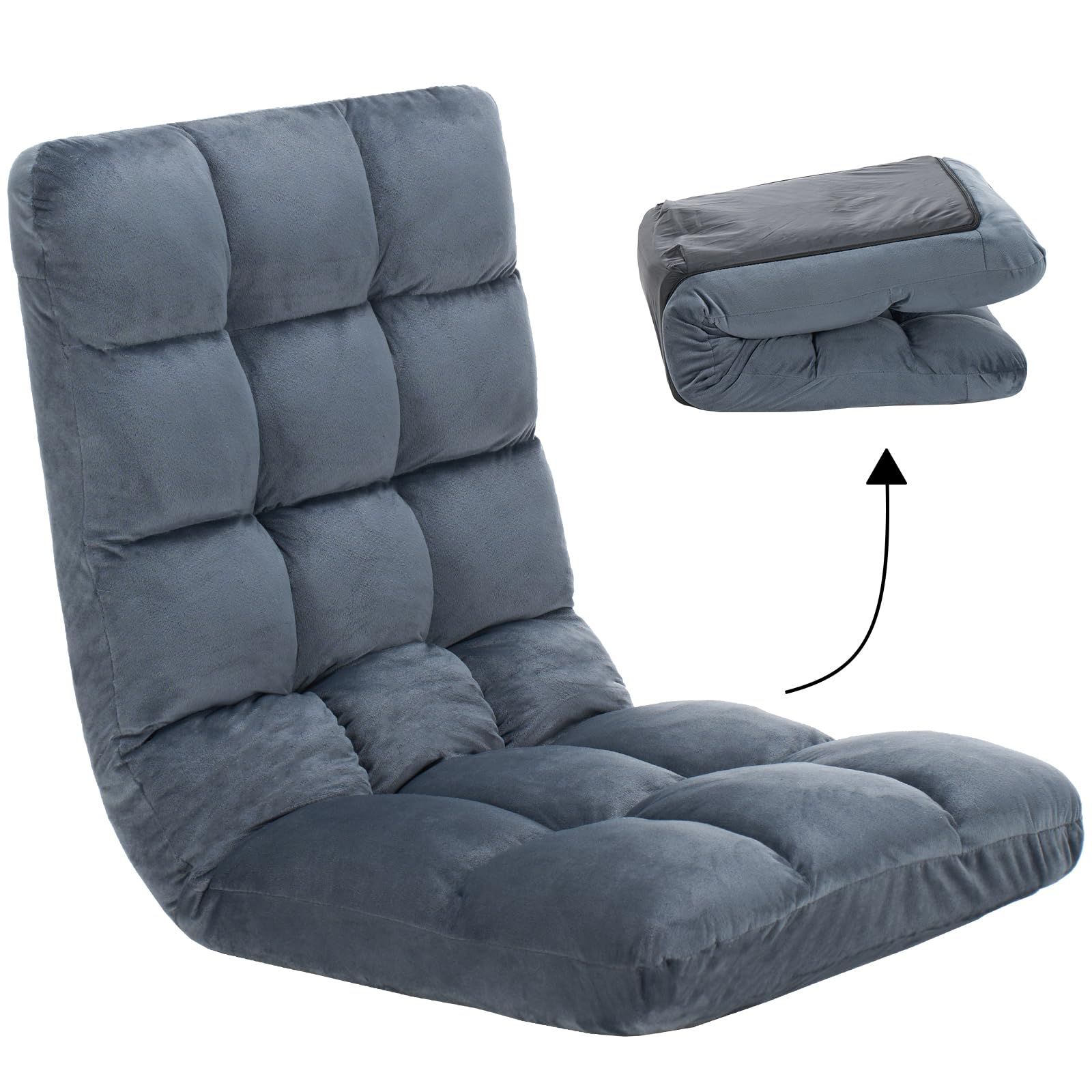 座椅子 ふわもこ 14段階 リクライニング コンパクト 折りたたみ ハイバック 1人掛け ソファー 柔らかな肌触り フロアチェア ローソファ あぐら 1人掛け ゲーミング リビング 和室 座敷 低反発 ふぁふぁ モコモコ座イス おしゃれ かわいい 新生活 ギフト プレゼント (グレー)