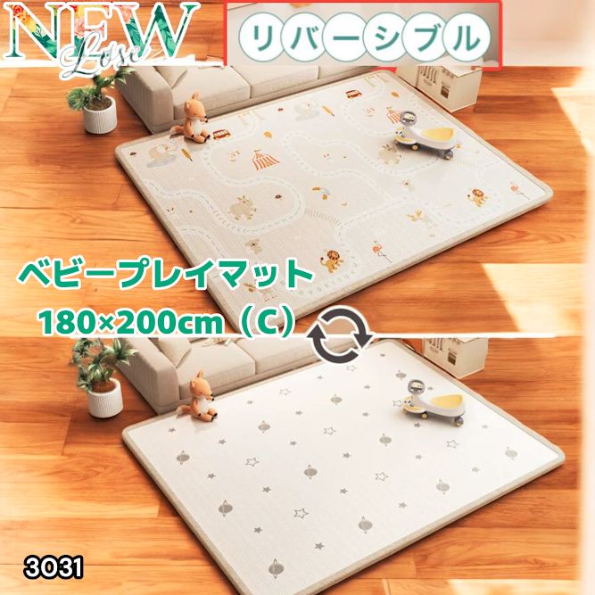 #3031 ベビーマット プレイマット 180×200cm 動物 カラーC ベビー 赤ちゃん シームレス ロール ペット フロアマット 防水 床 極厚 防音 子供部屋 保育園 幼稚園 ※一部地域離島別途配送料有
