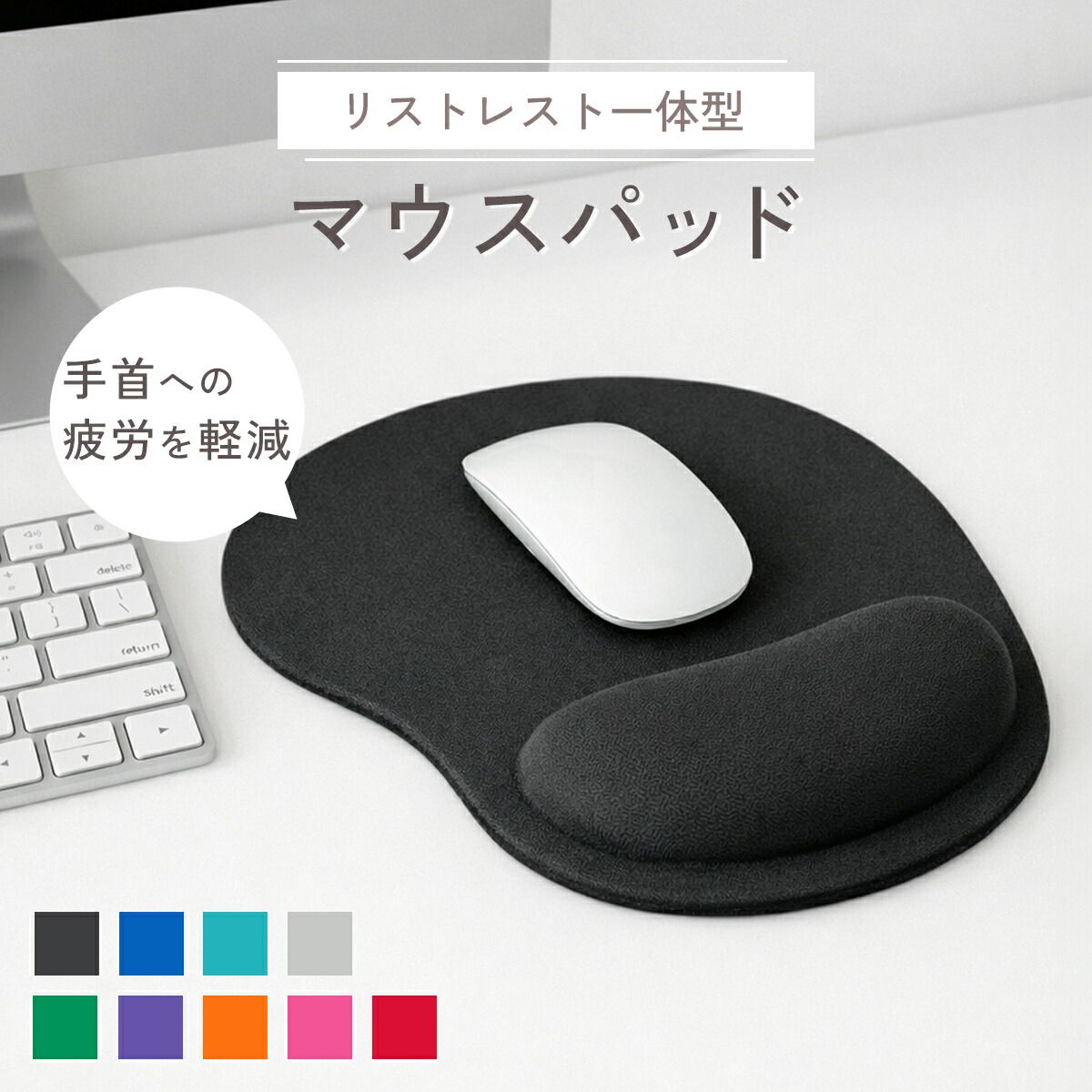 マウスパッド リストレスト 可愛い ゲーミング 手首 クッション 薄い 薄型 光学式 レーザー 疲労軽減 パソコン 周辺機器 おしゃれ シンプル 小さめ 小さい 疲れない 丸 無地