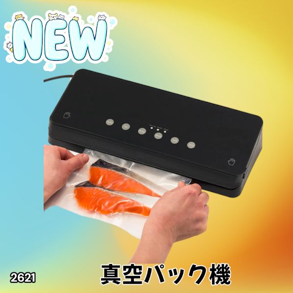 #2621 家庭用 真空パック機 ブラック 全3カラー 自動ワンタッチ 6in1 吸引力-60Kpa 専用袋付き フードシーラー 乾湿対応 ※北海道、沖縄本島、沖縄の離島、その他離島へは別途配送料有り