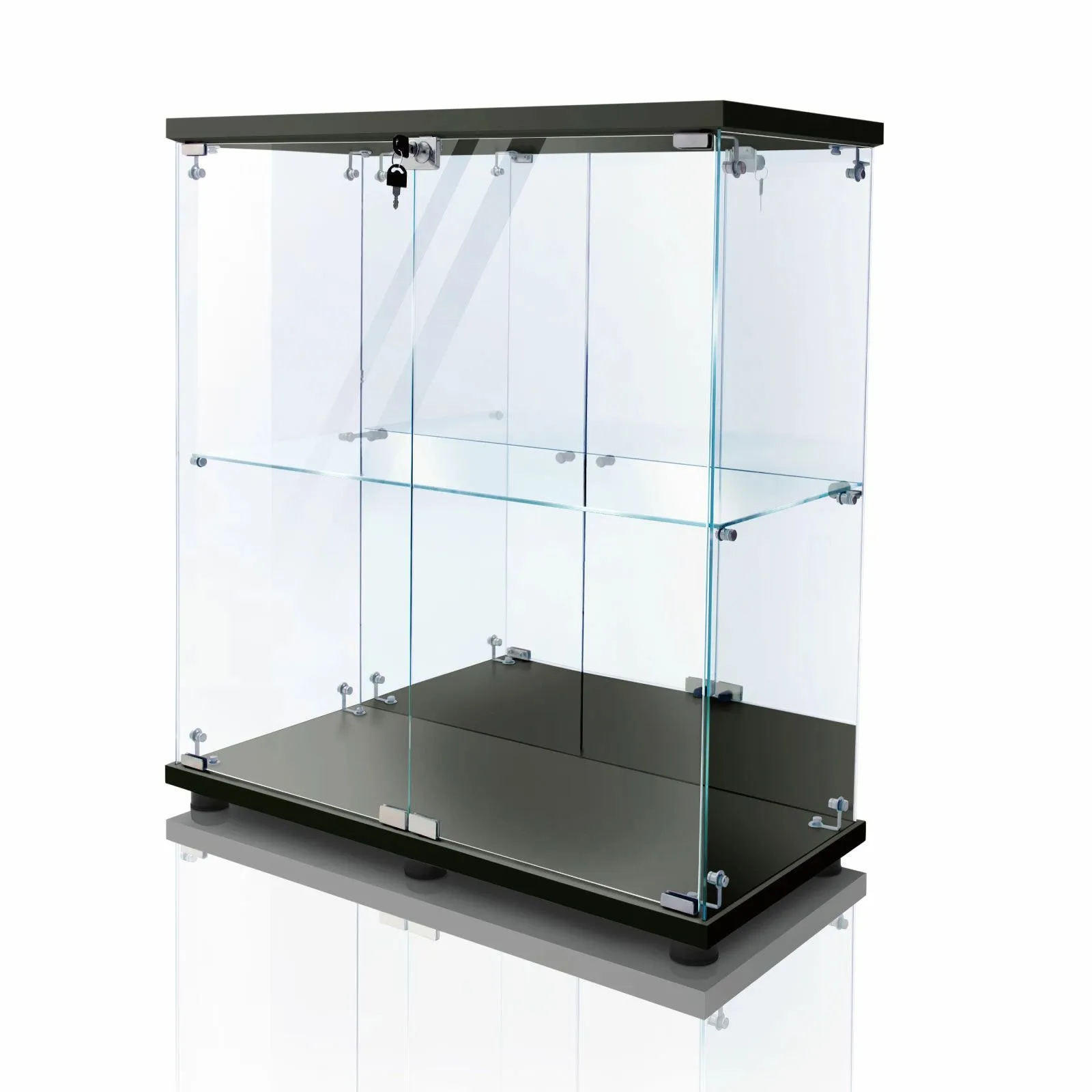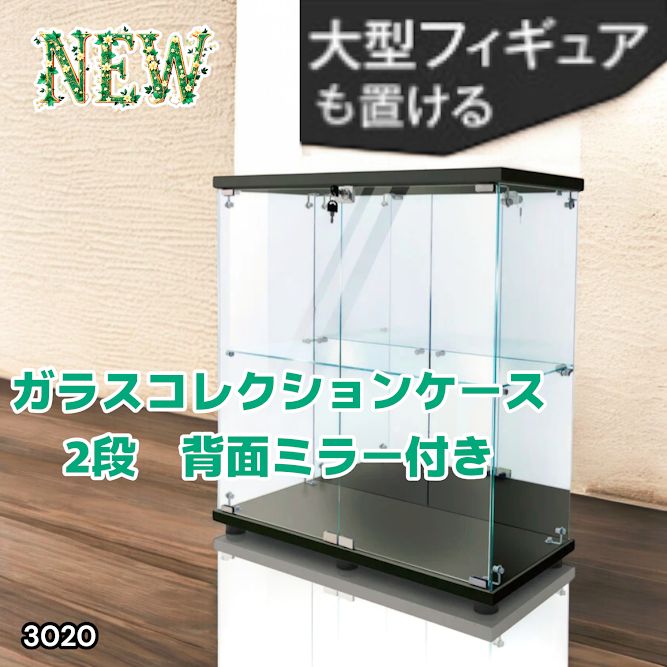 #3020 ショーケース ガラスケース 背面ミラー付き 2段 両扉タイプ ブラック 黒色 鍵付き コレクションケース フィギュア 棚 ショーケース キャビネット 大型 ※一部地域離島別途配送料有