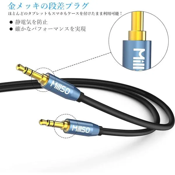ステレオ オーディオケーブル 5m MillSO MTM-500 3.5mm OFC 金メッキ メタルハウジング