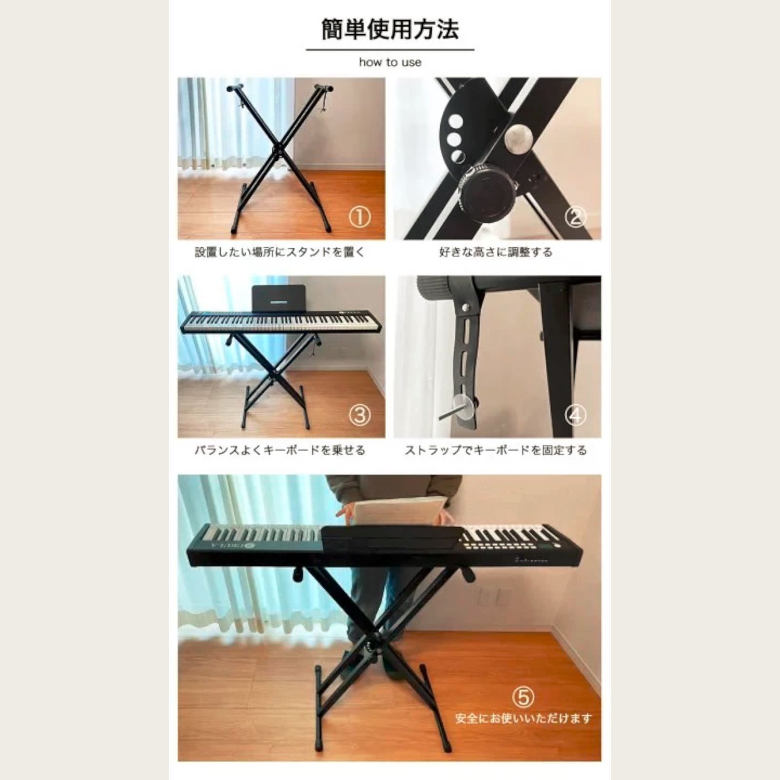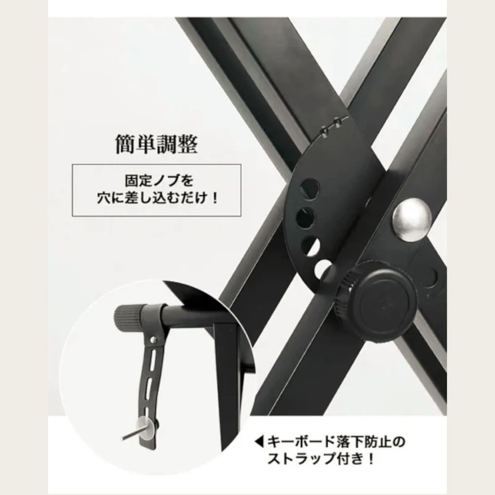 #2516 ピアノ キーボード スタンド ベージュ 調節可能 ポータブル 頑丈 譜面台 アンカーストラップ付き ※北海道、沖縄本島、沖縄の離島、その他離島へは別途配送料有り