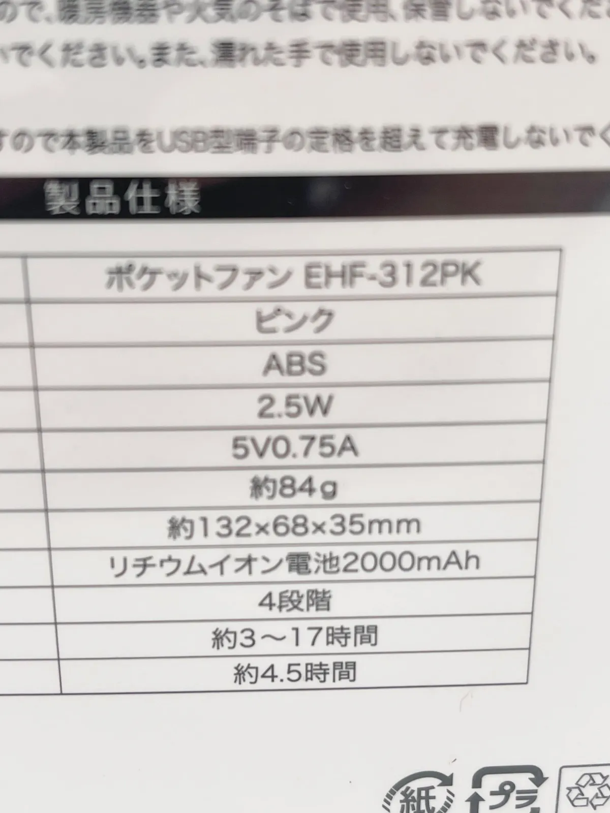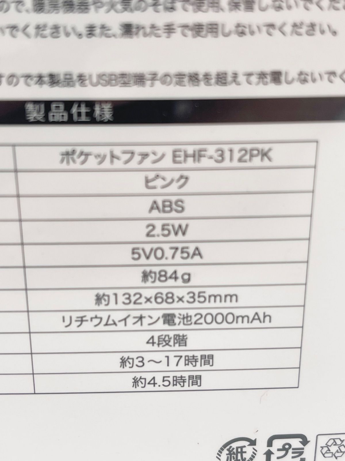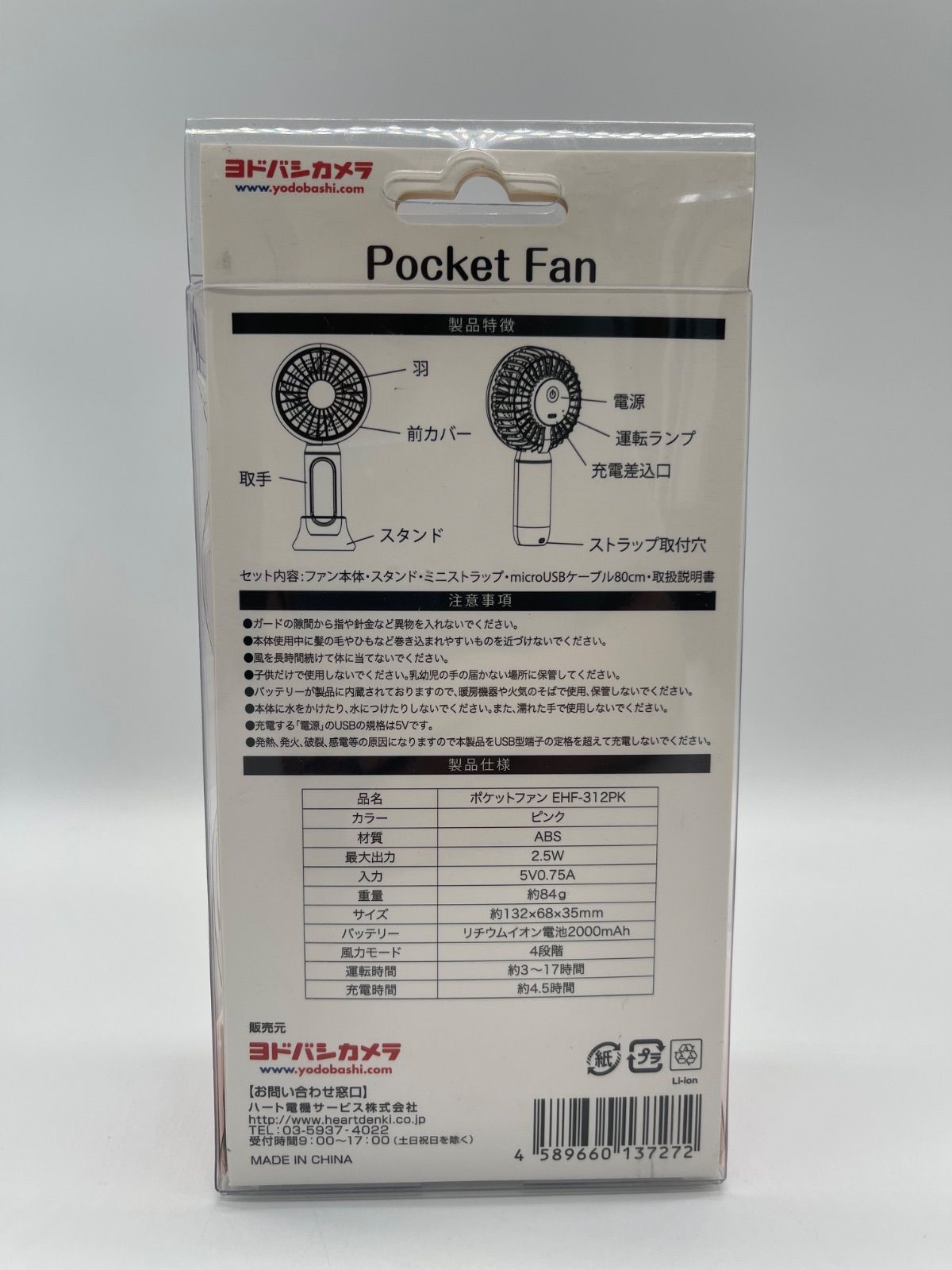 ヨドバシカメラ ポケットファン EHF-312PK 2000mAh *2678